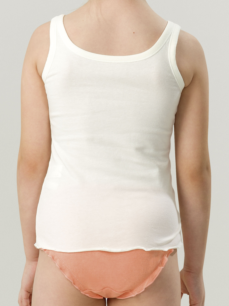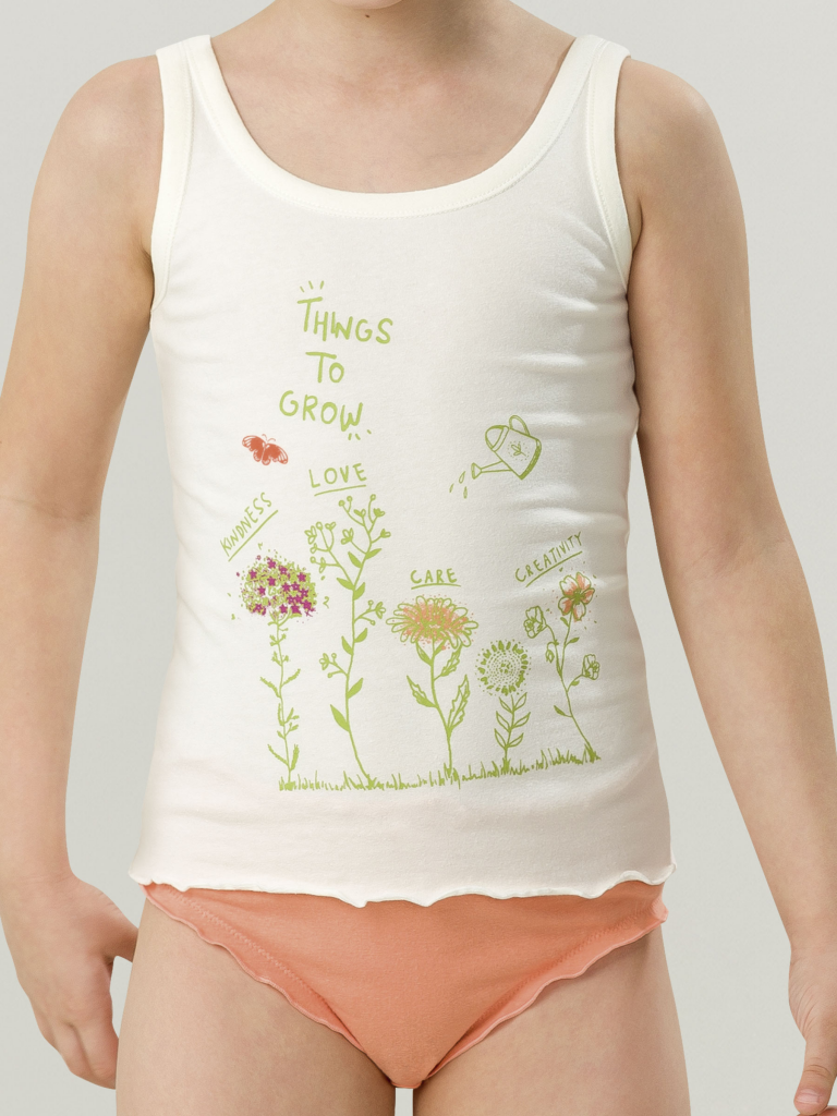 Детский комплект белья для девочки из хлопка с эластаном. В набор входит бельевая майка на бретелях и трусы слипы. Пошив высокого качества, аккуратные швы, которые не доставят дискомфорт для ребенка. Трусики и майка на широких бретельках идеально впишутся в гардероб девочек как базовое детское нижнее белье. Удобная и практичная модель майки на лямках для детей подходит для повседневной носки дома, как одежда для сна, в детский сад, для занятия спортом. Трикотажные детские трусики слипы с эластичной резинкой по талии надежно держатся на теле, не скручиваются, не закатываются и не сползают, а дышащая ткань позволяет избежать натирания нежной кожи.