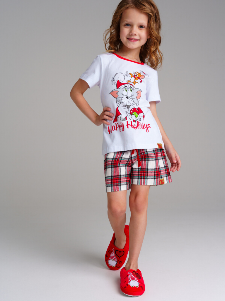 Пижама: футболка, шорты. Трикотажная футболка с высоким содержанием хлопка 95%. Благодаря наличию эластана в составе ткани, изделие проще в уходе и держит форму. Фланелевые шорты классического прямого кроя. Эластичный пояс с тесьмой позволяет легко надевать брюки и утягивать до комфортной посадки.