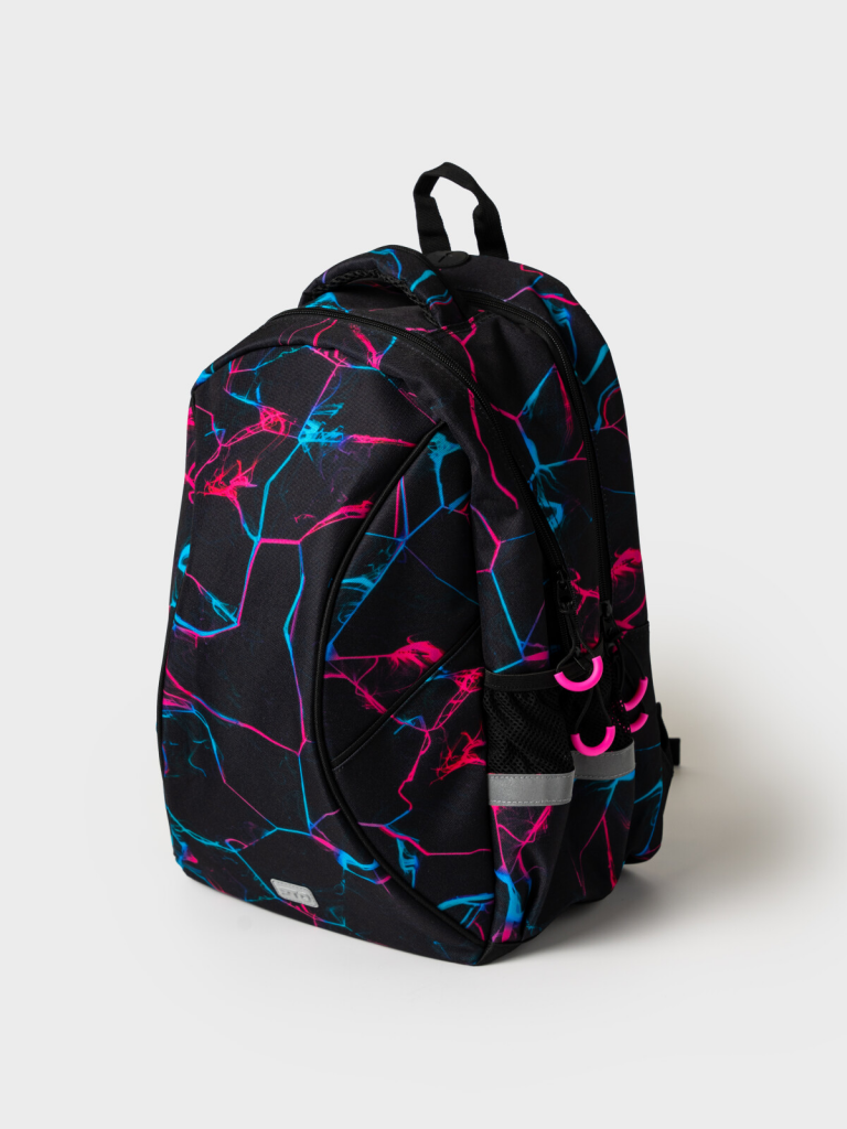 Спортивный рюкзак для художественной гимнастики для девочки подростка. Гимнастический рюкзак имеет два отделения с различными карманами внутри. В основном вместительном отделении расположены два боковых кармана на резинке для скакалки и полупальцев, также внутренний карман на молнии для телефона или документов. Второе отделение с двумя карманами под булавы и карманом для палочки с отверстием для нее. Сбоку имеются карманы из сетки на резинке. Широкие мягкие вентилируемые лямки регулируются по высоте. У рюкзака есть ручка для ношения в руке и для того, чтобы его можно было вешать на вешалку. Ранец имеет светоотражающие детали на лямках, по бокам, на переднем отделении, чтобы ребенка было хорошо видно в темноте со всех сторон. В подарок идет текстильный чехол для гимнастических принадлежностей. К рюкзаку можно подобрать спортивную сумку и чехлы для предметов художественной гимнастики в едином дизайне. Размер рюкзака: 32*43*22 см.