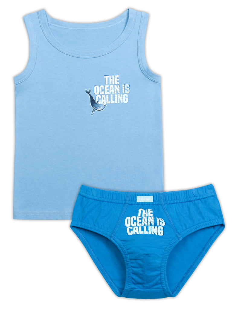 Комплект для мальчиков майка и трусы. Классическая майка на широких лямках. Трусы слипы. Декоративная отстрочка в области гульфика.