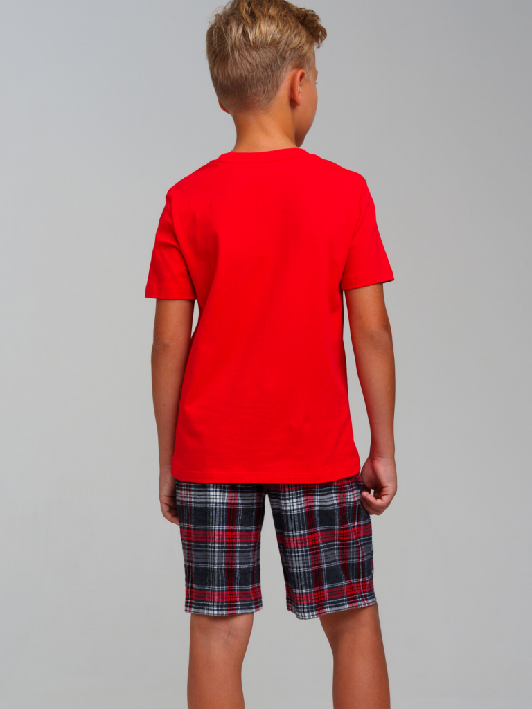 Пижама для мальчика подростка. Футболка из качественного и приятного на ощупь трикотажа джерси с высоким содержанием хлопка 95%. Благодаря наличию эластана в составе ткани изделие проще в уходе и держит форму. Шорты - 100% хлопок. Фланель - мягкая, приятная к телу ткань с небольшим начесом. Эластичный пояс с тесьмой позволяет легко надевать шорты и утягивать до комфортной посадки.