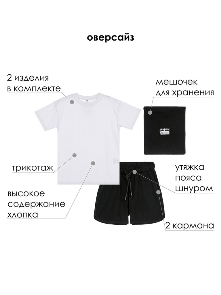 > Комплект для занятий спортом: футболка, шорты, сумка-мешок для девочки черный,белый