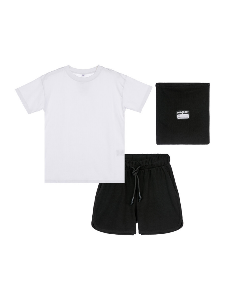 Комплект для занятий спортом: футболка, шорты, сумка-мешок для девочки черный,белый