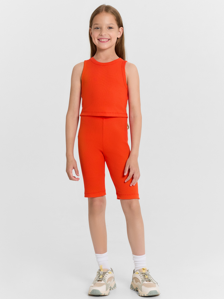 Представляем новинку — удобный детский комплект, идеально подходящий для активного отдыха и повседневной носки. Состоящий из топа и шорт-велосипедок, этот комплект обеспечит вашей дочери максимальный комфорт в любой ситуации. Верхняя часть комплекта – топ с круглым вырезом горловины, без рукавов. Мягкая, приятная на ощупь ткань из натурального хлопка. Шорты-велосипедки отличаются стильным и лаконичным дизайном. Благодаря эластичному поясу с удобной резинкой, они идеально сядут на фигуре, не перетягивая и не натирая. Облегающий крой гарантирует полную свободу движений во время активных игр или спортивных занятий. Универсальная цветовая гамма позволяет сочетать его с различными предметами гардероба. Будь то прогулка с друзьями, занятия спортом или просто комфортный отдых дома, этот хлопковый комплект станет настоящим must-have для вашей девочки. Широкий размерный и цветовой ряд. Рекомендуем!