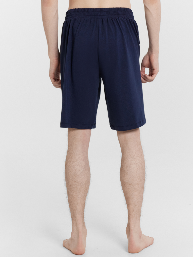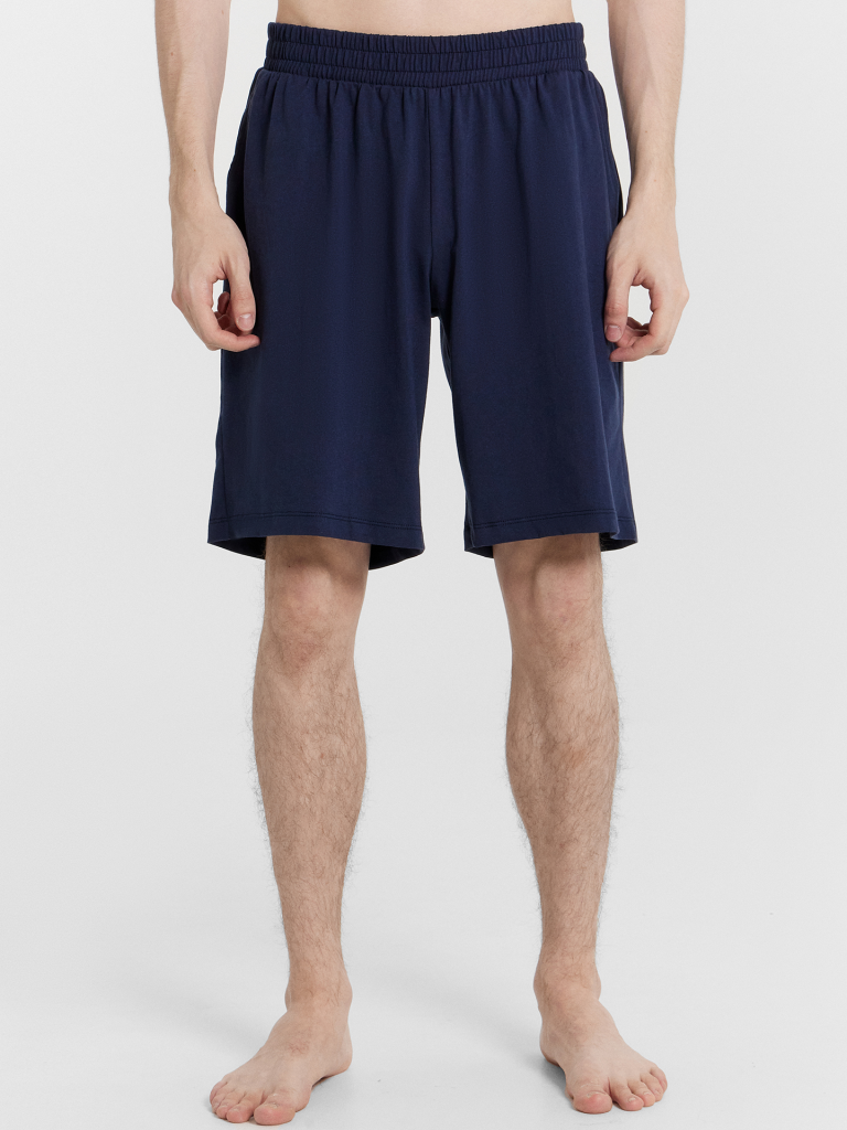 Шорты свободного силуэта. Длиной до колен. Пояс отрезной с эластичной тесьмой внутри.На деталях переда карманы с отрезным бочком. Нижние срезы шорт обработаны швом вподгибку.