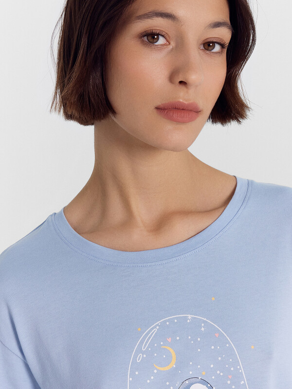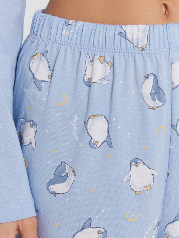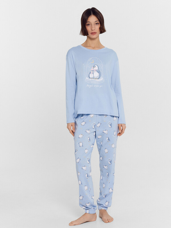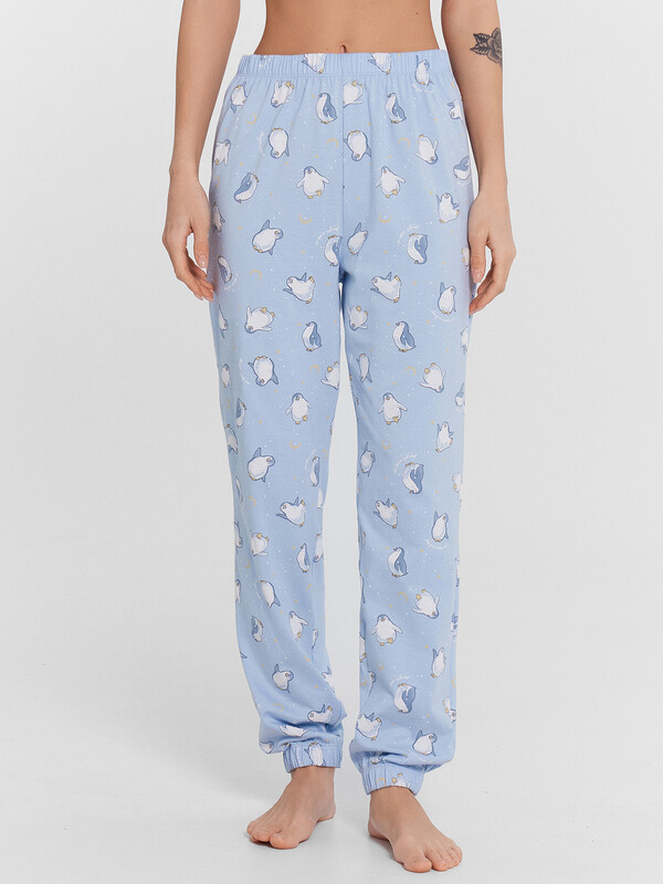 Милый женский комплект из высококачественного хлопка с принтом. Джемпер свободного силуэта с круглой горловиной и длинными рукавами. Свободные брюки, чуть зауженные к низу, длиной до косточки, с классической линией талии и эластичной тесьмой в поясе.Идеальный вариант пижамы на каждый день. Широкая размерная сетка, есть модели plus-size, в линейке много базовых и других милых расцветок пижам. Рекомендуем для сна, отдыха и домашних дел, а также в качестве приятного подарка для любимых!