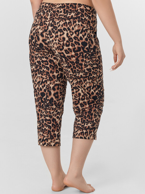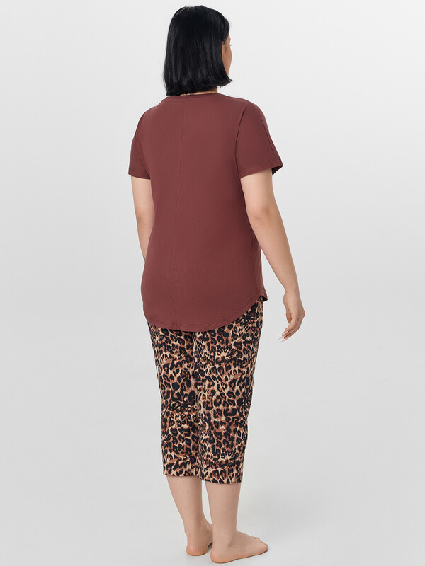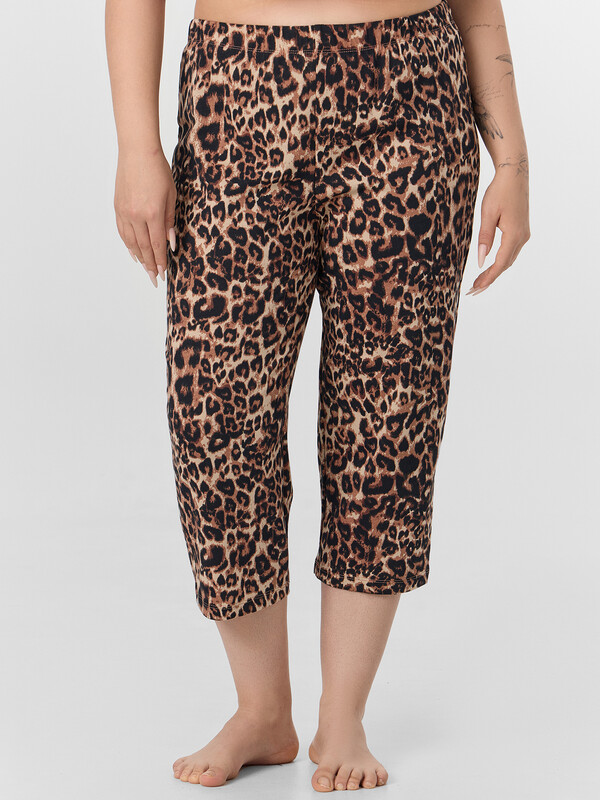 Коричневый домашний комплект с леопардовым принтом создан для моментов полного расслабления. Основное преимущество — полностью натуральный материал: хлопок в составе обеспечивает комфорт в любое время года. Плотная, но мягкая ткань обладает хорошей воздухопроницаемостью и помогает поддерживать оптимальную температуру тела. Футболка свободного кроя с округлой горловиной и бриджи на мягкой резинке обеспечивают полную свободу движений, не сковывая и не ограничивая вас даже во время сна. Плоские внутренние швы и эластичные манжеты не создают давления и дискомфорта. Качественный хлопок устойчив к многократным стиркам, сохраняя форму и насыщенность цвета, оставаясь приятным к телу.