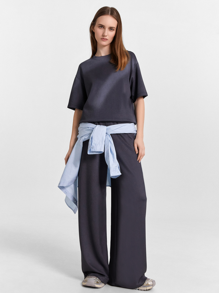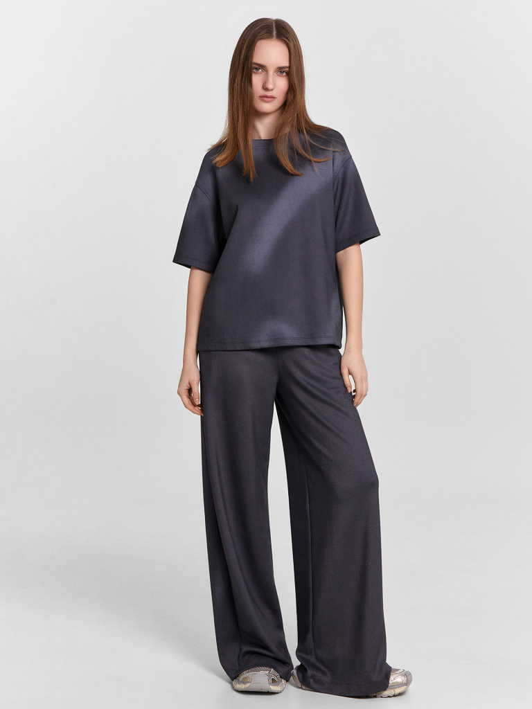 Женский комплект из трикотажного материала интерлок – это идеальное сочетание комфорта и практичности! Свободная футболка с круглой горловиной и короткими рукавами создает легкий и расслабленный образ, а спущенное плечо и углубленная пройма придают изделию стильную непринужденность. Материал интерлок обеспечивает мягкость, прочность и комфорт при носке. Свободные брюки с эластичным поясом удобно сидят на фигуре, обеспечивая свободу движений. Практичные боковые карманы с подкладкой из кулирки добавляют функциональности изделию, сохраняя его стильный внешний вид. Этот комплект станет отличным выбором для дома, отдыха или активного досуга, гармонично сочетая уют и современный дизайн!
