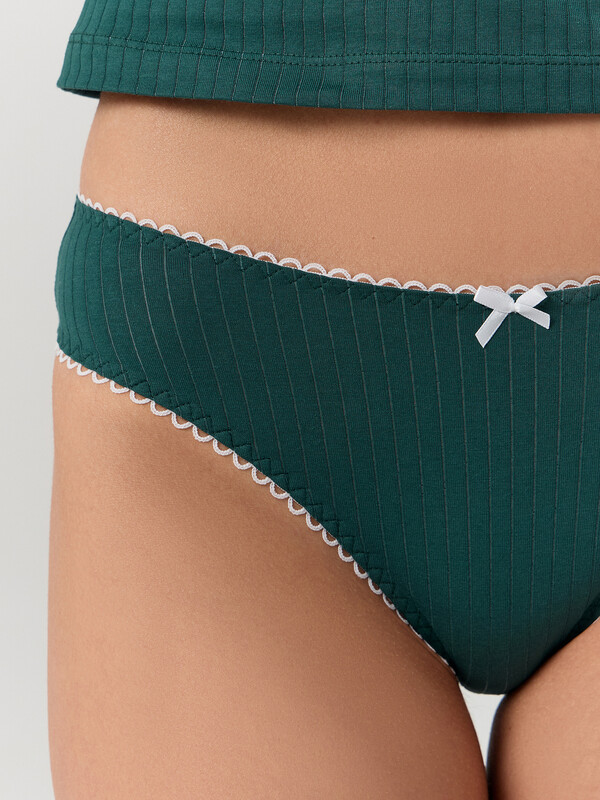 Трусы женские слипы со средней посадкой из кулирного полотна. Подкладка ластовицы из основного полотна, отлетная по переднему краю.
