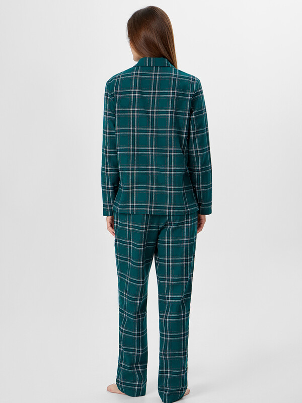 Брюки с широким эластичным поясом мягко сидят на талии, не оставляя следов, а клетчатый рисунок придает образу теплоту и домашний шарм. Этот комплект подойдет для сна, утреннего кофе или отдыха с книгой — он сочетает практичность и стиль. Если вы ищете, где купить домашнюю пижаму, которая объединяет натуральные материалы, продуманный крой и дизайн, этот набор станет вашим любимым выбором.