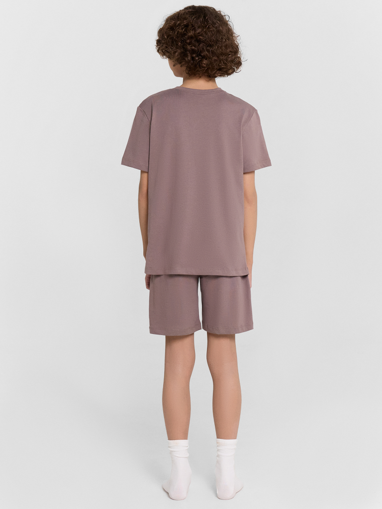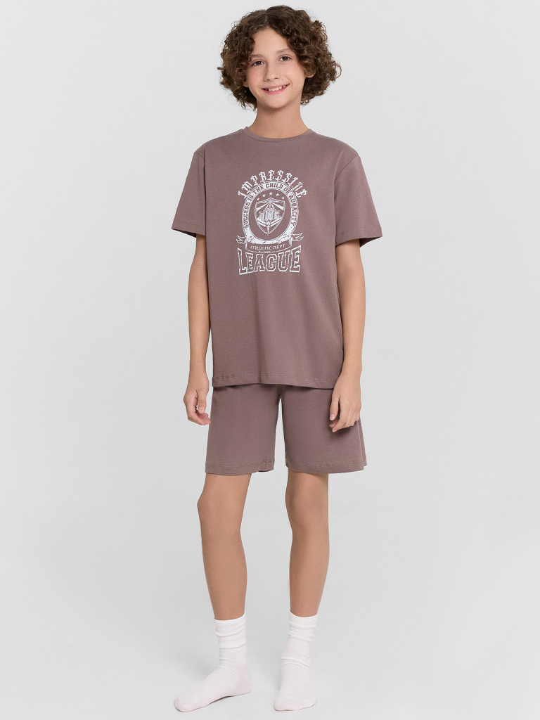 Пижама для мальчиков — идеальное сочетание комфорта и практичности для сна и отдыха! Комплект включает свободную футболку с круглой горловиной и короткими рукавами, обеспечивающую удобную посадку и комфорт в течение ночи. Шорты длиной до колен дополнены эластичной тесьмой в поясе, что позволяет регулировать посадку и гарантирует свободу движений. Изделие выполнено из хлопковой кулирки — мягкого и воздухопроницаемого материала, который приятно прилегает к коже и дарит ощущение легкости. Такая ткань обеспечивает уют и комфорт в любую погоду. Этот комплект станет отличным выбором для спокойного сна и расслабленного домашнего отдыха, позволяя ребёнку чувствовать себя комфортно и свободно. Универсальная и удобная модель для повседневного гардероба!