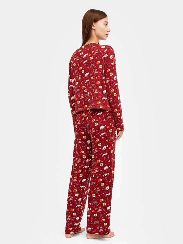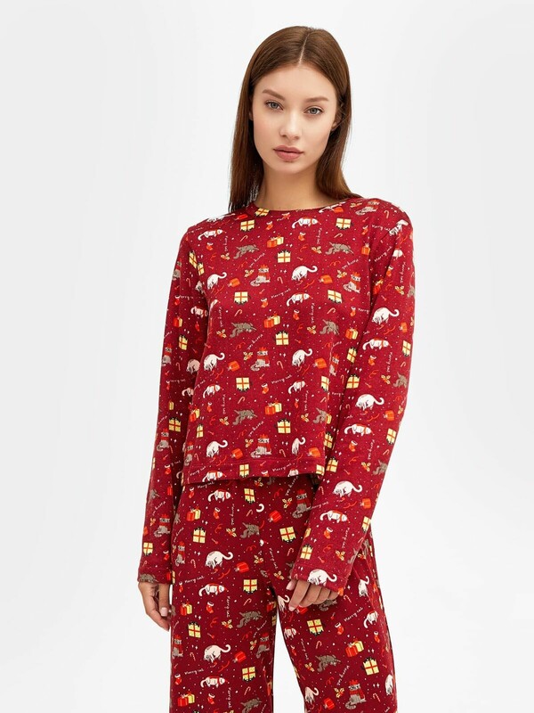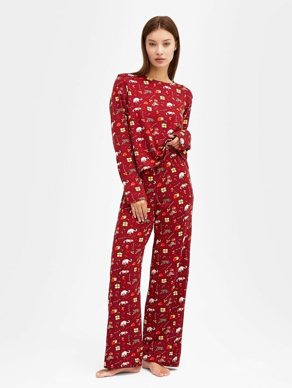 Домашний комплект для женщин создаст незабываемое ощущение тепла и уюта. Он состоит из лонгслива и брюк свободного силуэта, идеально подходящих для домашнего комфорта. Лонгслив с круглым вырезом и длинными рукавами гарантирует легкость и свободу движений. А прямые брюки с эластичной тесьмой в поясе идеальны для домашнего отдыха. Этот комплект выполнен из высококачественной хлопковой кулирки, известной своей мягкостью и воздухопроницаемостью. Он станет вашим любимым выбором для сладких снов и домашних дел. Подарите себе или своим близким уют с этим великолепным комплектом от Mark Formelle!
