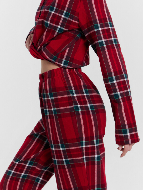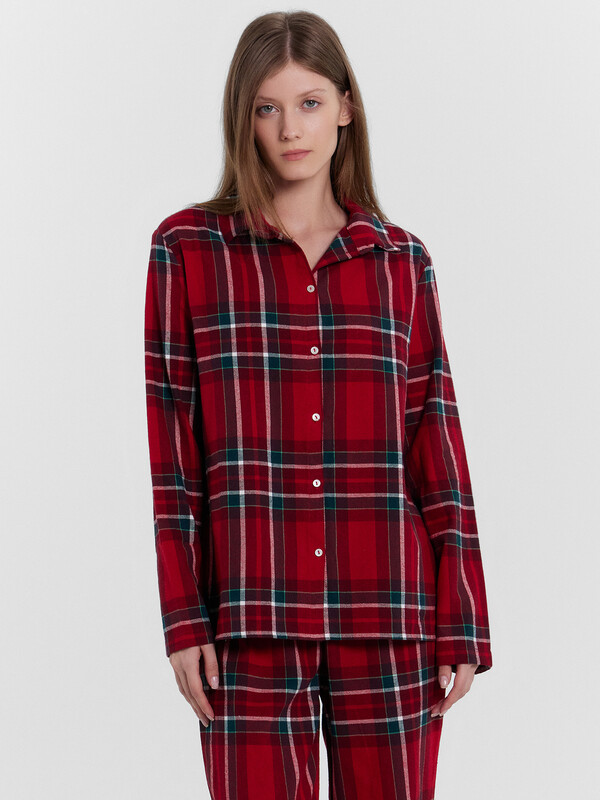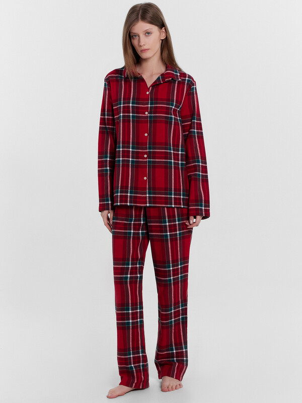 Женский комплект из чистого хлопка дополнит ваш домашний гардероб. Рубашка имеет прямой силуэт, застежку на пуговицах и длинные рукава с немного заниженной линией плеча, что придает ей элегантный вид. Брюки свободного силуэта с эластичной талией обеспечат комфорт и уют. Мягкий, уютный и невероятно приятный к телу комплект станет идеальным выбором для сна, отдыха и домашних дел. Широкий размерный ряд позволит выбрать идеальную модель для любого типа фигуры. Подарите себе или своим близким уют и комфорт с этим замечательным комплектом от Mark Formelle!