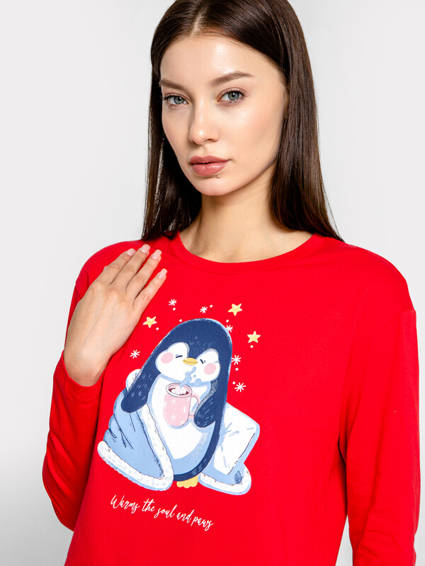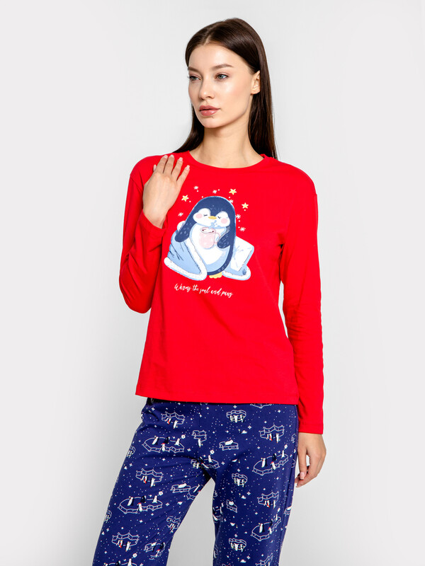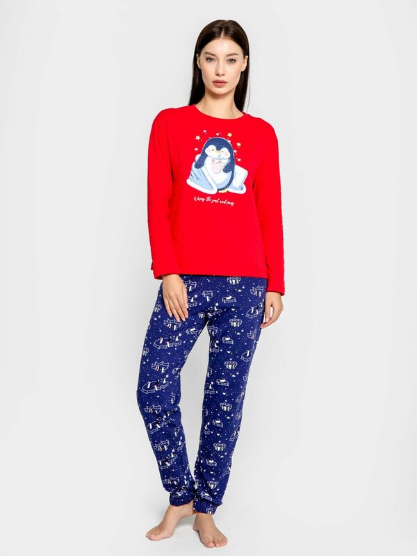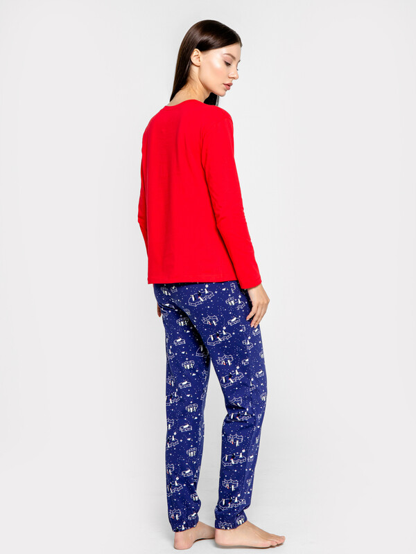 Милый женский комплект из высококачественного хлопка с принтом. Джемпер свободного силуэта с круглой горловиной и длинными рукавами. Свободные брюки, чуть зауженные к низу, длиной до косточки, с классической линией талии и эластичной тесьмой в поясе.Идеальный вариант пижамы на каждый день. Широкая размерная сетка, есть модели plus-size, в линейке много базовых и других милых расцветок пижам. Рекомендуем для сна, отдыха и домашних дел, а также в качестве приятного подарка для любимых!