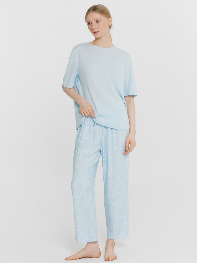 Подарите себе уют и комфорт с этой стильной женской пижамой, которая станет вашим любимым выбором для сна и домашнего отдыха! Комплект включает футболку и бриджи прямого кроя, обеспечивающие свободу движений и элегантность даже в домашней обстановке. Изготовленная из нежного сочетания вискозы и модала, пижама радует своей мягкостью, эластичностью и гипоаллергенными свойствами, что делает её идеальной для чувствительной кожи. Эта модель прекрасно подходит как для расслабленного отдыха дома, так и для повседневных дел. Универсальный дизайн легко дополнит ваш домашний гардероб, а высокое качество материалов гарантирует долгий срок службы. Пижама станет отличным подарком, способным принести радость и уют близким на любой праздник или просто без повода. Комфорт и стиль — всё это воплощено в одной вещи!