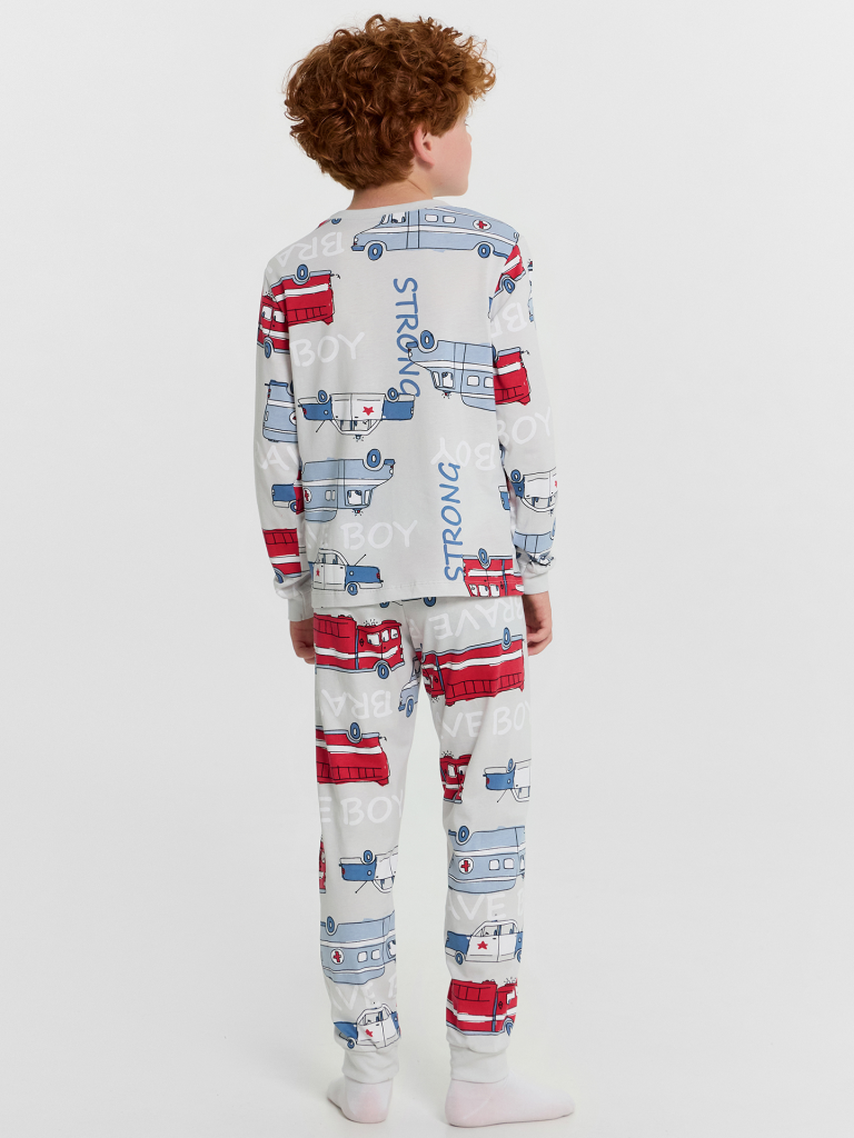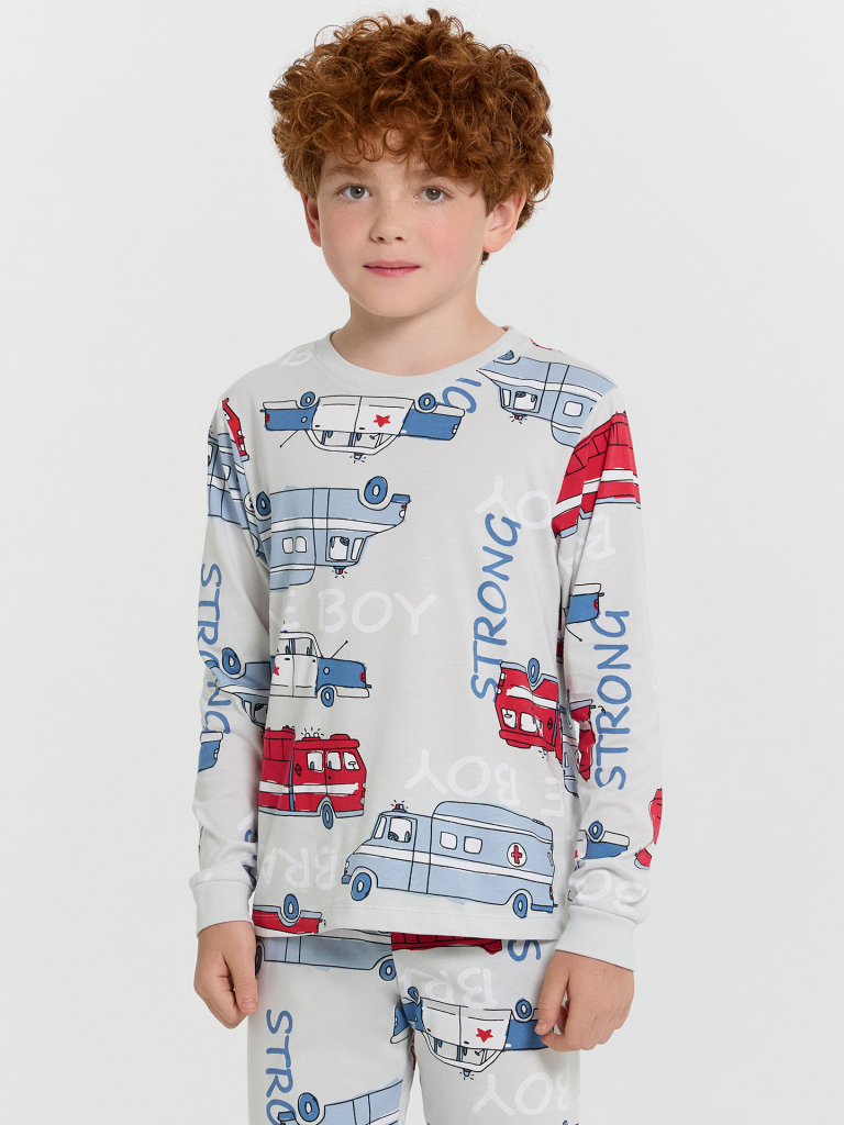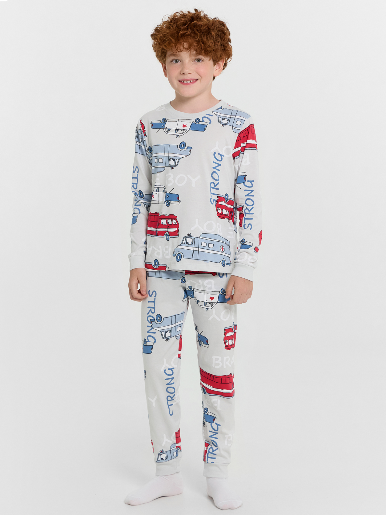Комплект для мальчиков состоит из джемпера с длинным рукавом и брюк. Изготовлена модель из высококачественного хлопка, что обеспечит комфорт как в летний, так и в зимний период. Пижама для подростка мальчика отлично подходит для отдыха в комфортной домашней обстановке и сна. Пижама детская — отличный подарок ребенку на любой праздник. Обязательно понравится ребенку, ведь она выполнена в трендовых цветах и украшена милыми и оригинальными рисунками. Широкий размерный и цветовой ряд. Рекомендуем!