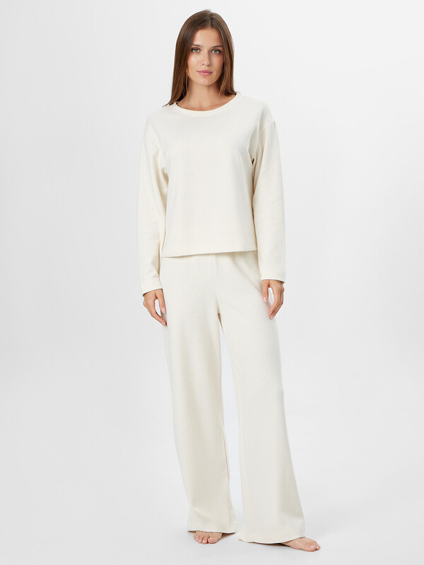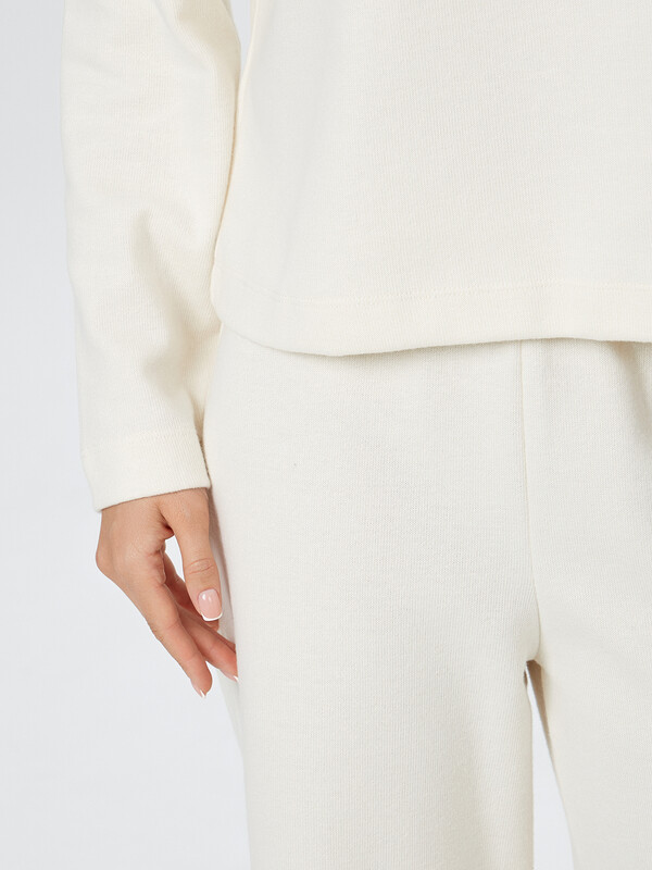 Джемпер прямого силуэта со спущенным плечом и длинными рукавами мягко окутывает ваше тело, а круглая горловина не стесняет движений. Брюки с эластичным поясом на широкой резинке облегают талию, не оставляя следов, а свободный крой дарит ощущение легкости.