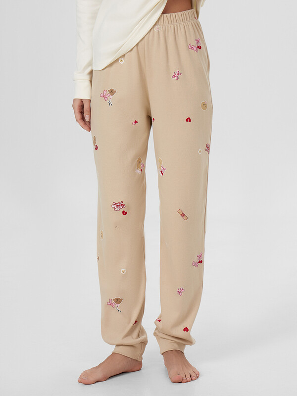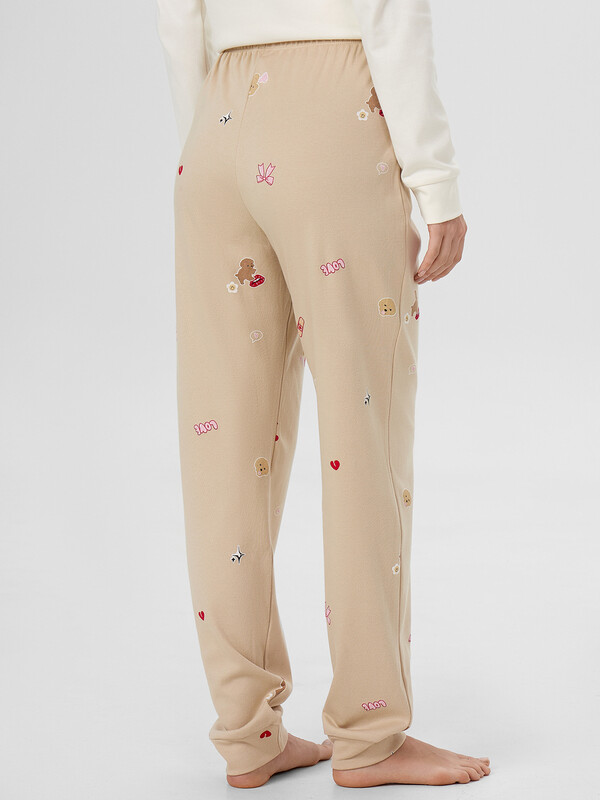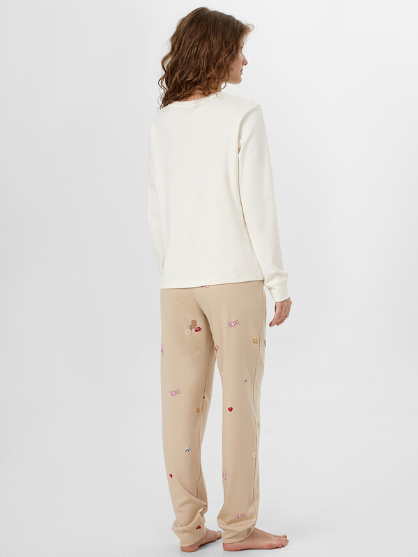 Модель, выполненная из высококачественного хлопка, станет отличным вложением в ваш гардероб. Джемпер свободного силуэта с круглой горловиной создаёт нежный и элегантный образ. А прямые брюки с эластичным поясом идеально садятся по фигуре, не сковывая движений и дарят чувство лёгкости и свободы. Эта мягкая и комфортная пижама идеальна для сна, отдыха и домашних дел. Она сочетает в себе стиль и функциональность, позволяя вам выглядеть прекрасно в любой ситуации.