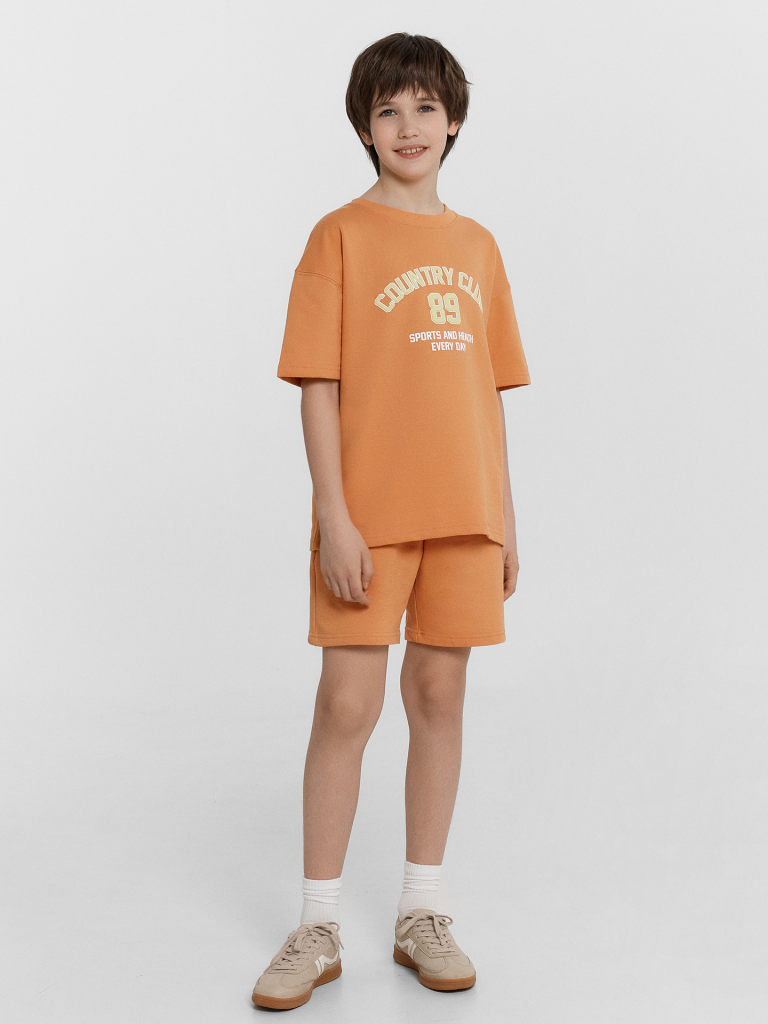 Стильный комплект для мальчиков. Состоит из футболки и шортов. Выполнен из высококачественного хлопка. Футболка прямого свободного силуэта, длиной до середины бедер, с круглой горловиной и короткими рукавами. Шорты длиной до колен или чуть выше, свободные, с боковыми карманами. В пояс из рибаны вставлен регулировочный шнур. Отличный вариант для повседневной носки, прогулок и путешествий. Широкий размерный ряд. Рекомендуем!