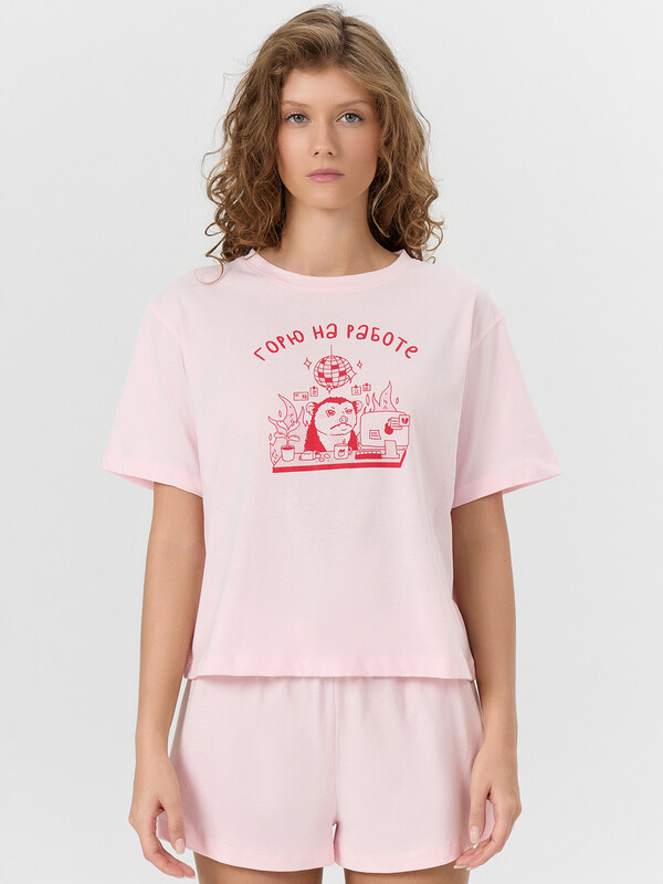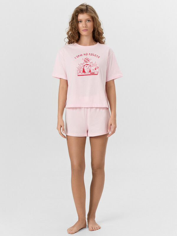 Женский домашний комплект из трикотажной кулирки — это идеальное сочетание легкости, комфорта и лаконичного стиля, созданное для расслабленного отдыха и теплого домашнего настроения. Свободная футболка с округлой горловиной и слегка спущенной линией плеча дарит ощущение свободы и непринужденности, а мягкая кулирка обеспечивает приятный контакт с кожей и хорошую воздухопроницаемость. Свободные рукава и аккуратная обработка низа в подгибку делают модель практичной и долговечной. Шорты — короткие, свободного силуэта, с эластичным поясом, который мягко фиксирует их на талии и не сдавливает. Лёгкий крой позволяет двигаться свободно, а шов в подгибку по низу сохраняет форму после стирок. Модель отлично подойдет для сна, домашних дел или отдыха, создавая ощущение комфорта и уюта в любое время суток.