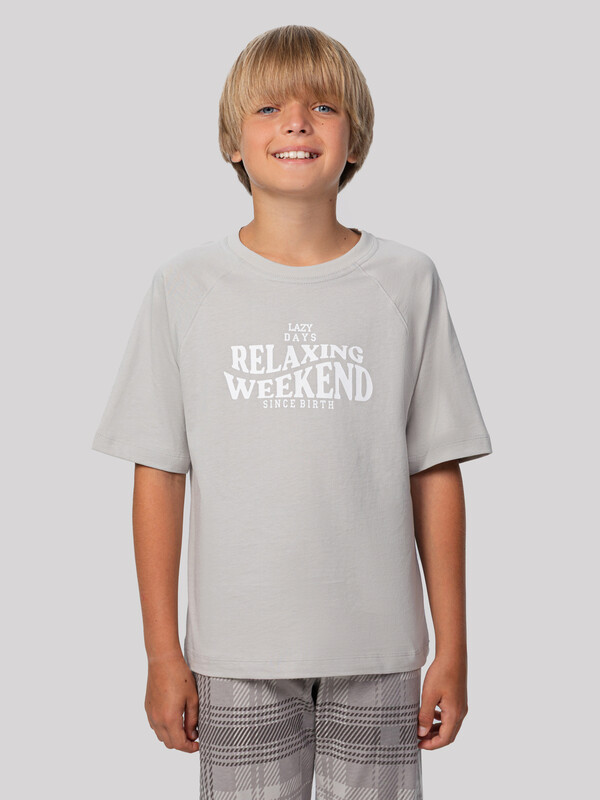 Этот домашний комплект для мальчиков — идеальное сочетание удобства, практичности и мягкости натуральных тканей. Он включает футболку и прямые брюки, выполненные из хлопка, который обеспечивает хорошую воздухопроницаемость и мягкость, особенно важные для активных детей. Футболка имеет классический круглый вырез с усиленной обтачкой из рибаны — она помогает сохранять форму даже после многократных стирок. Короткие рукава и низ футболки обработаны швом вподгибку, что придает изделию аккуратный и законченный вид. Брюки дополнены эластичным поясом, который мягко фиксируется на талии, не создавая дискомфорта. Прямой крой обеспечивает свободу движений, а застроченный низ делает их устойчивыми к износу. Комплект не только хорошо сидит, но и легко надевается — отличный выбор для дома, игр, сна или отдыха. Простота исполнения и качественные детали делают его универсальным вариантом на каждый день.
