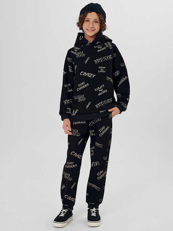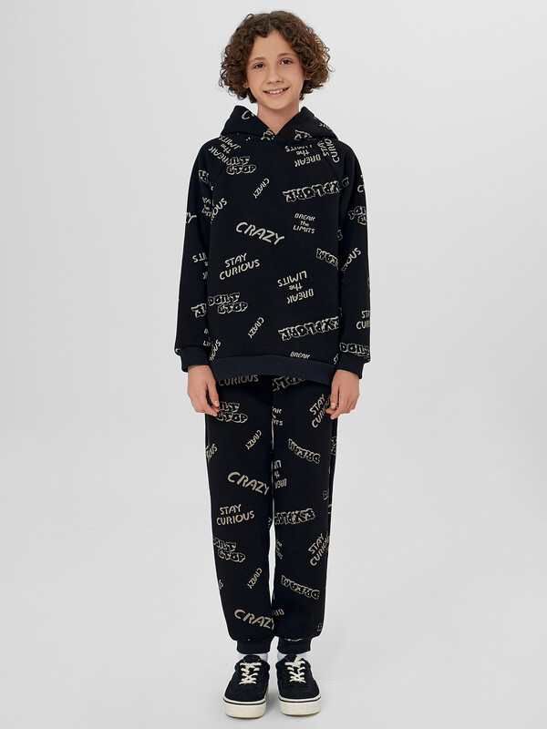Стильный комплект детский включает худи с капюшоном и брюки прямого силуэта с эластичной тесьмой. Линия плеча в худи немного спущена, что дарит свободу движений. Материал изделия футер с подчесом, мягкий и приятный к телу. В таком костюме будет уютно и комфортно круглый год. За счет своего универсального кроя, комплект отлично подходит для ежедневной носки в садик, школу, его можно одеть на прогулку или взять в путешествие. Не стесняет движений, хорошо тянется и позволяет ребенку быть максимально активным. Если вы в поиске идеального варианта на каждый день, который можно сочетать и с другими вещами из детского гардероба — эта модель вам понравится. В линейке широкий размерный и цветовой ряд, есть интересные варианты с принтами, рисунками и печатями. Порадуйте своего ребенка стильным подарком из линейки базовой детской одежды от Mark Formelle!