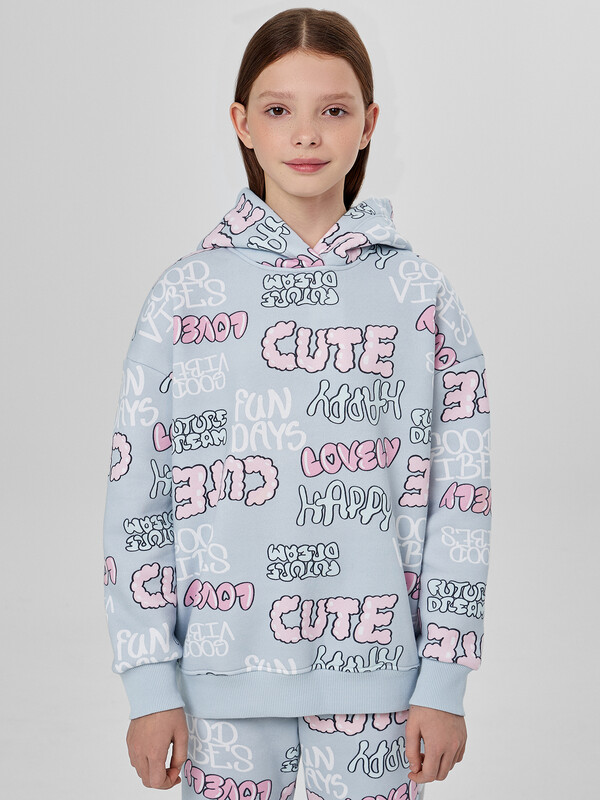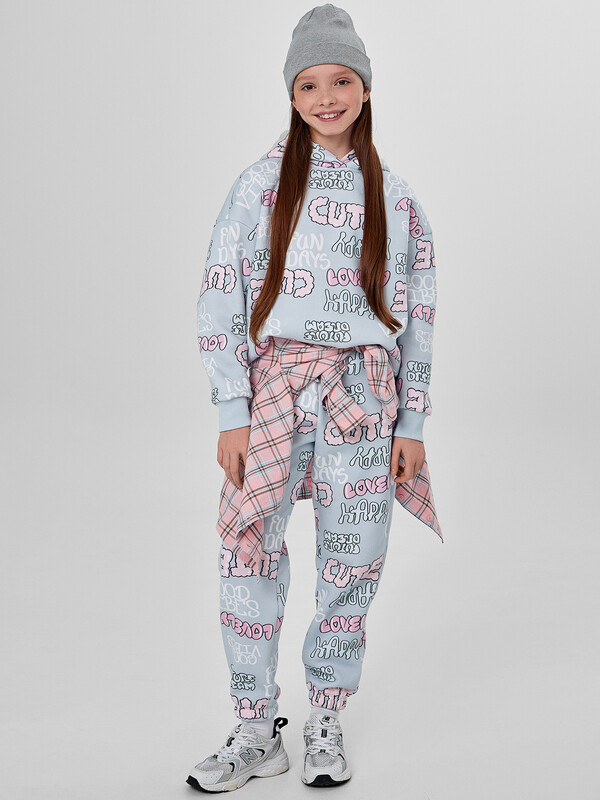 Уютная толстовка с капюшоном надежно защитит от ветра, а свободные брюки на удобной резинке со шнурком не стеснят движений ни на прогулке, ни на встрече с подругами.