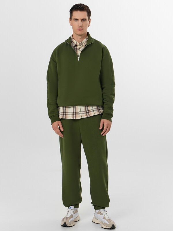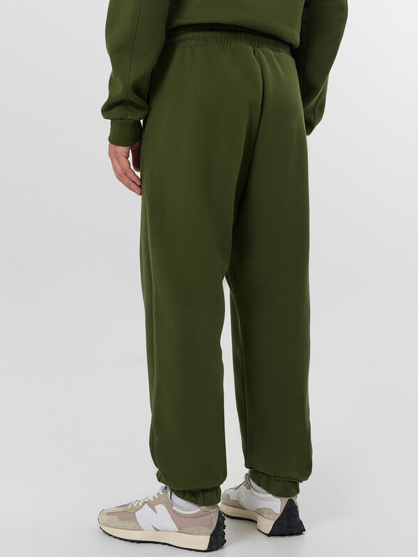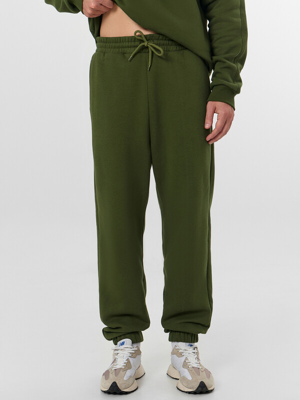 Брюки свободного силуэта. Посадка средняя. Сидение немного спущено. На передних деталях карманы в боковых швах. Подкладка карманов из кулирки. Пояс отрезной с эластичной тесьмой. По переду в поясе пробиты петли и протянут шнур 8 EKXWC-1, 8 мм с эглетом. Низ брюк обработан вподгибку с эластичной тесьмой.