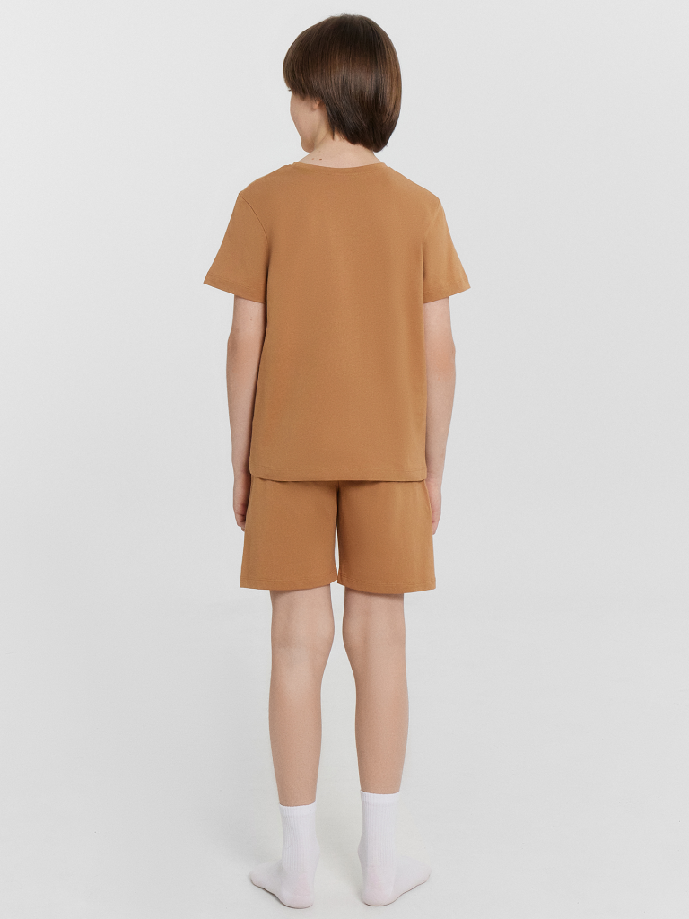 Пижама для мальчиков — идеальное сочетание комфорта и практичности для сна и отдыха! Комплект включает свободную футболку с круглой горловиной и короткими рукавами, обеспечивающую удобную посадку и комфорт в течение ночи. Шорты длиной до колен дополнены эластичной тесьмой в поясе, что позволяет регулировать посадку и гарантирует свободу движений. Изделие выполнено из хлопковой кулирки — мягкого и воздухопроницаемого материала, который приятно прилегает к коже и дарит ощущение легкости. Такая ткань обеспечивает уют и комфорт в любую погоду. Этот комплект станет отличным выбором для спокойного сна и расслабленного домашнего отдыха, позволяя ребёнку чувствовать себя комфортно и свободно. Универсальная и удобная модель для повседневного гардероба!