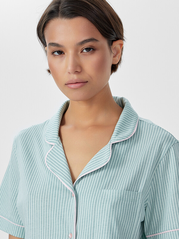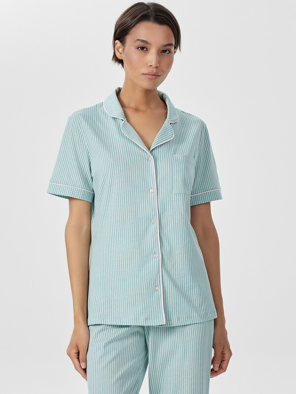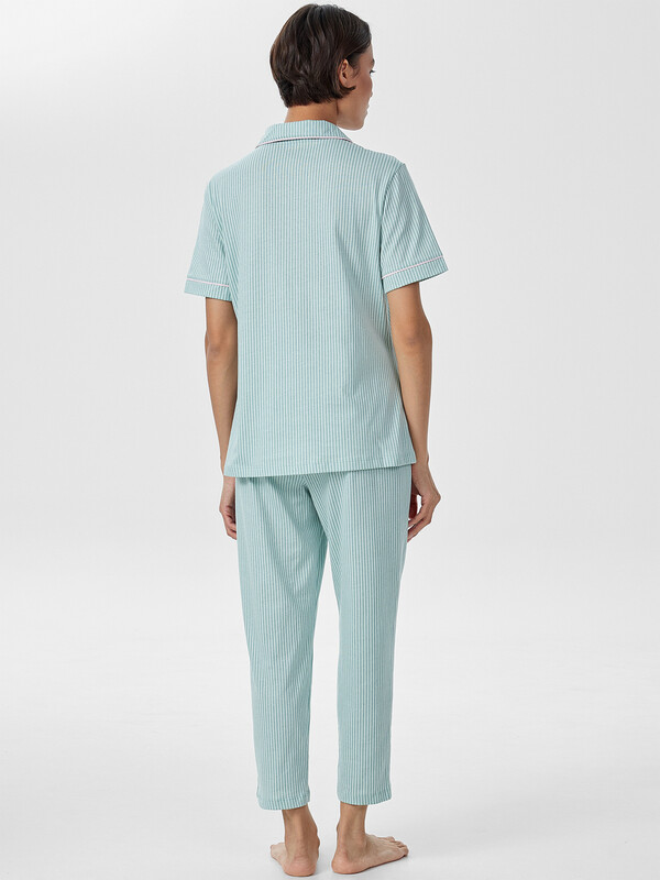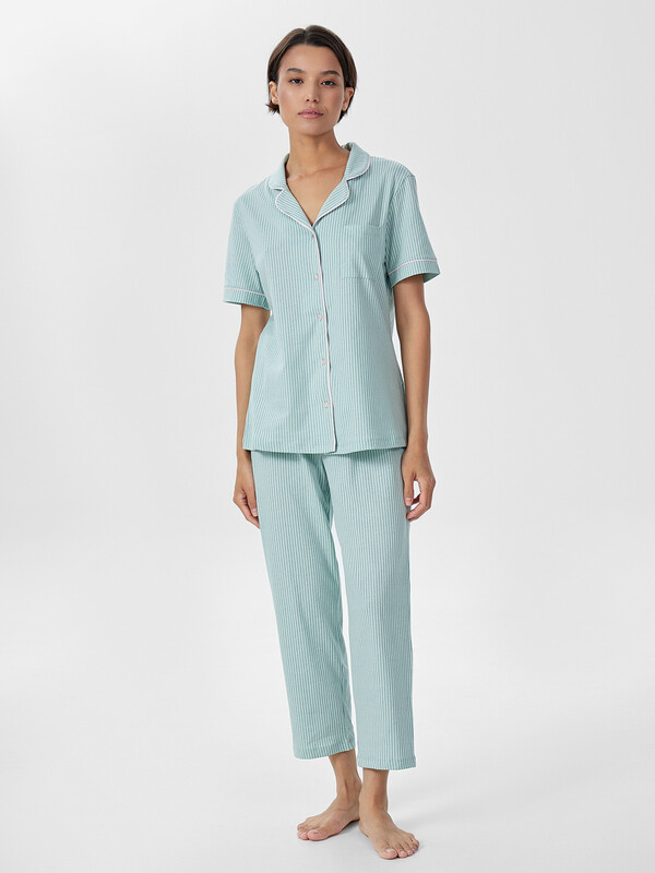 Комплект состоит из джемпера и бридж. Жакет прямого силуэта, спинка цельнокроеная. На левой детали переда накладной карман ( по заданию). Горловина оформлена отложным воротником с лацканами. Край борта и воротника оформлен кантом. Рукав втачной короткий, низ рукавов обработан манжетой с втачным кантом. Жакет с центральной застежкой с петлями и пуговицами. Низ застрочен в подгибку.