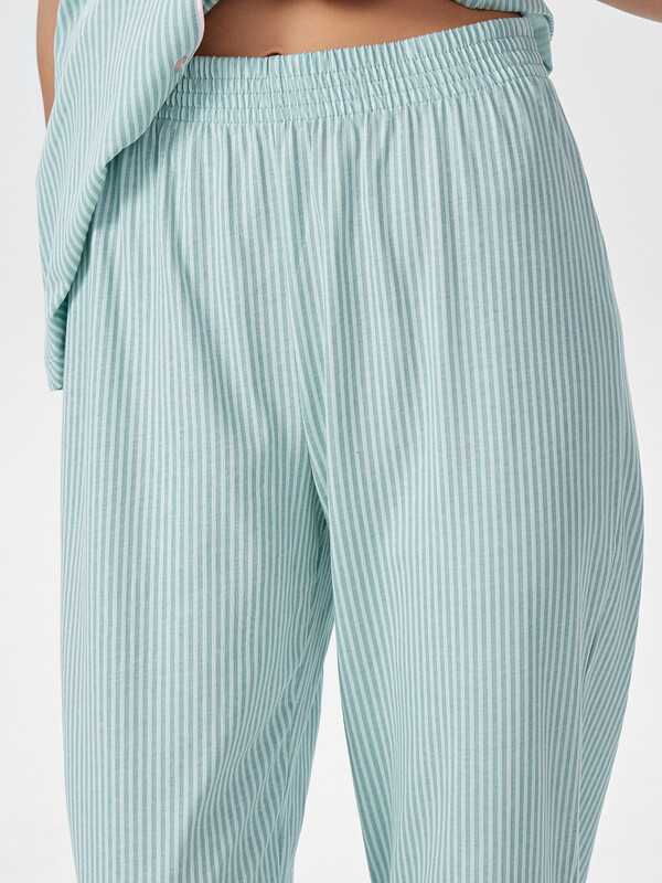 Бриджи с посадкой на талии свободного силуэта. Пояс цельнокроенный с резиной внутри 40 RV. Низ обработан в подгибку.