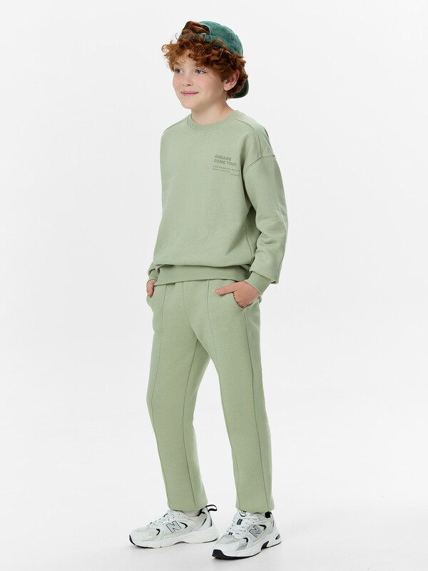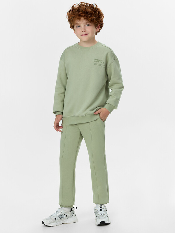 Комплект для мальчиков — это удобство и свобода движений, собранные в стильной и практичной форме. Свитшот прямого силуэта с длинными рукавами на манжетах и круглой горловиной создает уютный и аккуратный образ, а трикотажный футер с подчесом делает модель особенно теплой и мягкой — идеальной для прохладной погоды. Брюки сочетаются с верхом не только визуально, но и функционально: они не сковывают движения, легко тянутся и позволяют ребенку оставаться активным в течение всего дня. Универсальный крой делает комплект актуальным для сада, школы и прогулок, а разнообразие размеров и цветов позволяет выбрать вариант, который точно понравится и родителям, и ребенку.