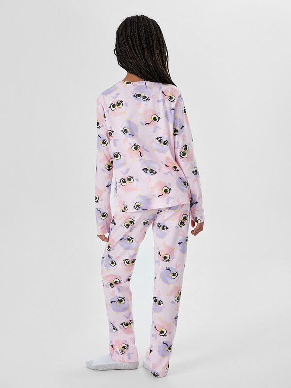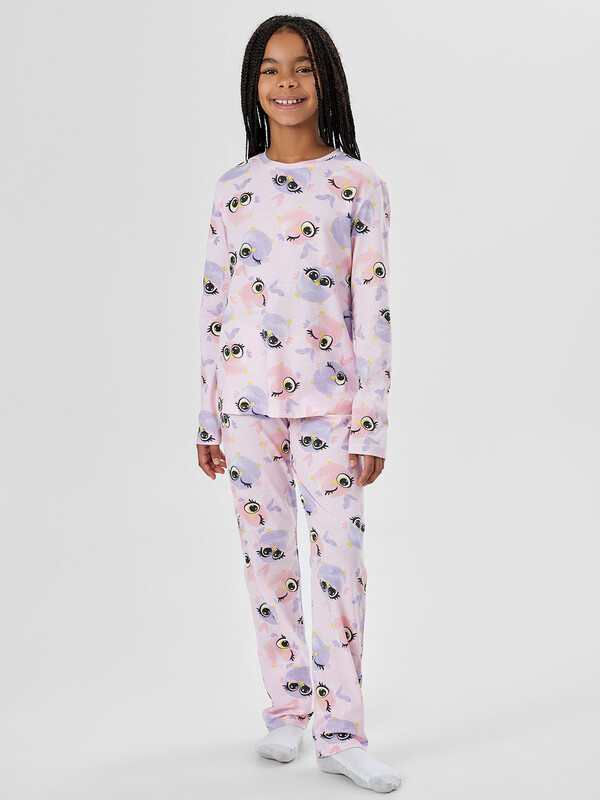 Этот нежный комплект из джемпера и брюк создан для комфортного отдыха и спокойного сна. Мягкий трикотаж с забавными "Пушистиками" подарит ощущение уюта и сделает вечерние приготовления ко сну более приятными.