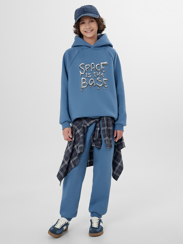 Стильный комплект детский включает худи с капюшоном и брюки прямого силуэта с эластичной тесьмой. Линия плеча в худи немного спущена, что дарит свободу движений. Материал изделия футер с подчесом, мягкий и приятный к телу. В таком костюме будет уютно и комфортно круглый год. За счет своего универсального кроя, комплект отлично подходит для ежедневной носки в садик, школу, его можно одеть на прогулку или взять в путешествие. Не стесняет движений, хорошо тянется и позволяет ребенку быть максимально активным. Если вы в поиске идеального варианта на каждый день, который можно сочетать и с другими вещами из детского гардероба — эта модель вам понравится. В линейке широкий размерный и цветовой ряд, есть интересные варианты с принтами, рисунками и печатями. Порадуйте своего ребенка стильным подарком из линейки базовой детской одежды от Mark Formelle!