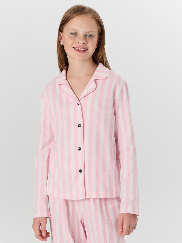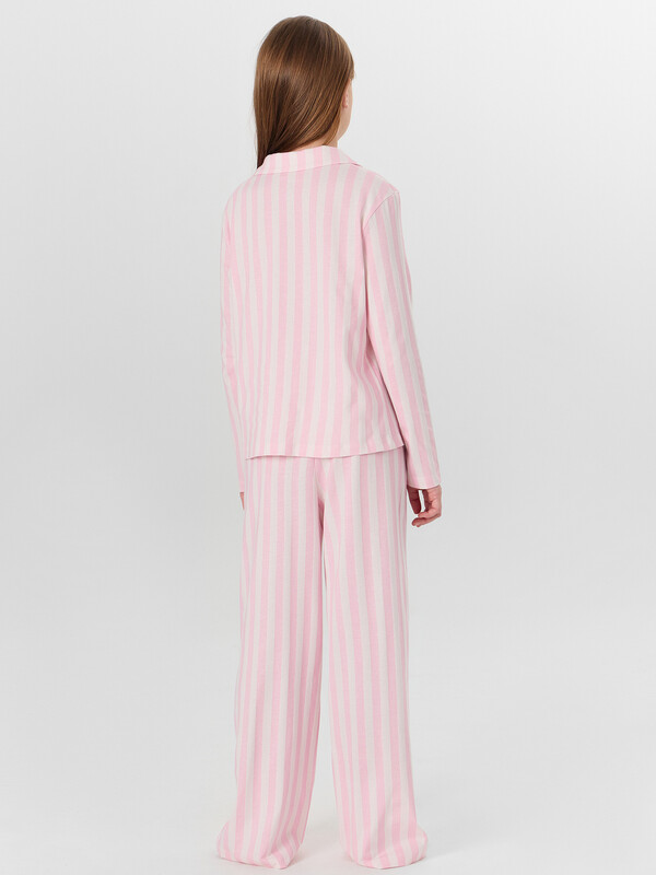 Комплект состоит из рубашки и брюк. Рубашка прямого силуэта, с отложным воротником, спинка цельнокроеная.
