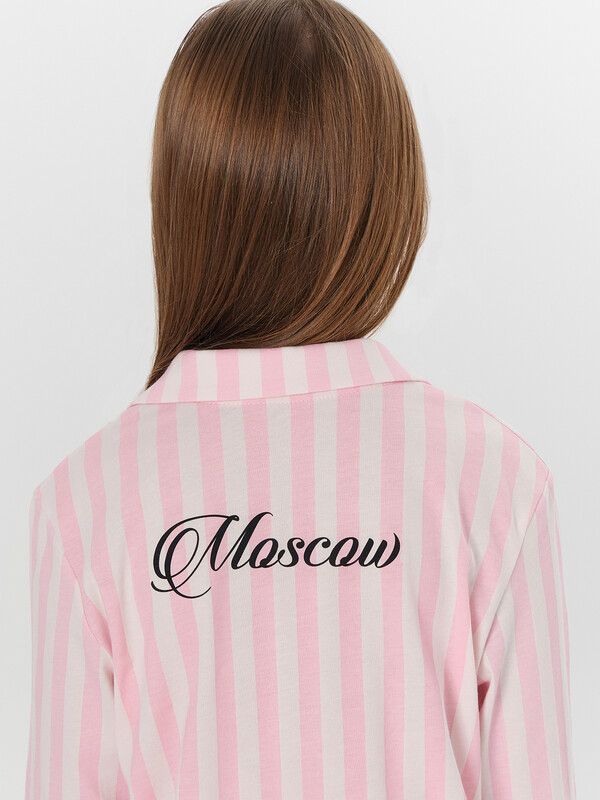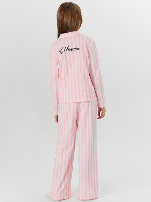 Комплект состоит из рубашки и брюк. Рубашка прямого силуэта, с отложным воротником, спинка цельнокроеная.
