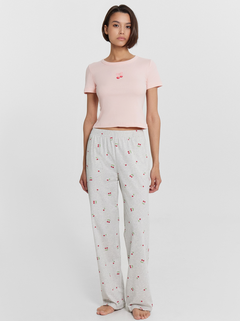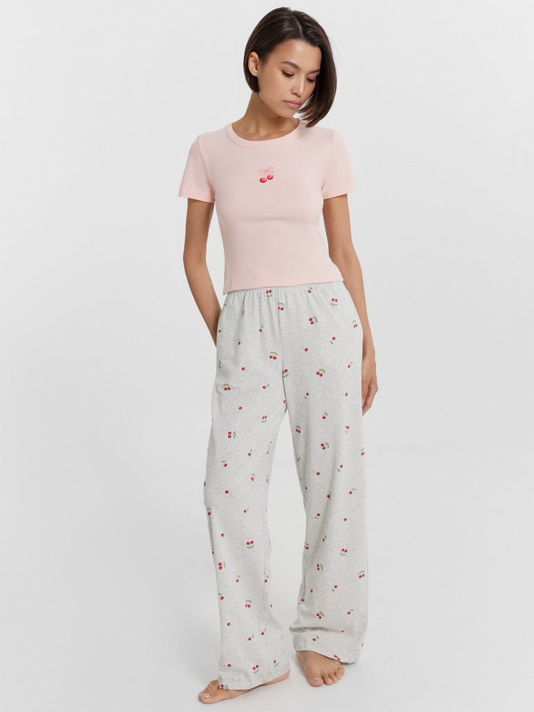 Рукав втачной, короткий. Низ футболки и рукавов обработаны швом в подгибку.