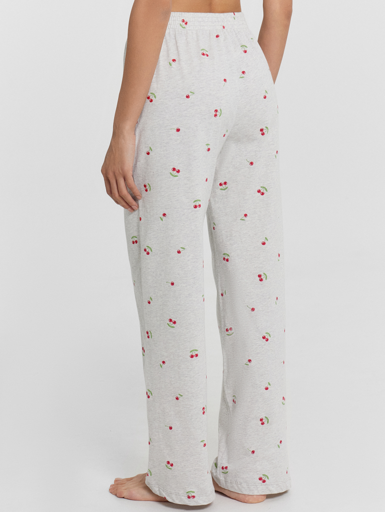 Брюки с посадкой на талии свободного силуэта. Пояс цельнокроеный с резиной внутри 40RV. В боковых швах карманы. Низ изделия застрочен швом в подгибку.