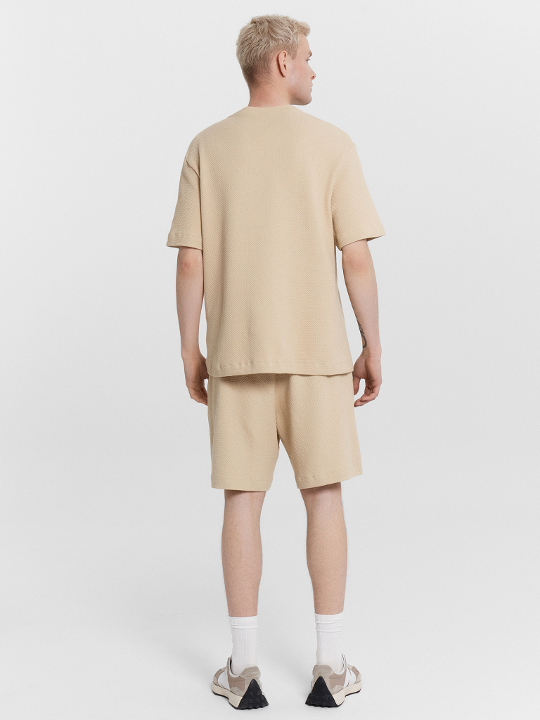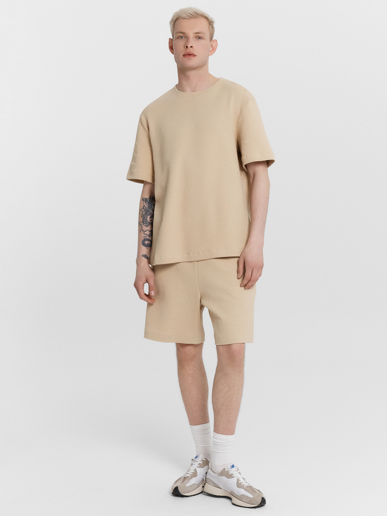 Мужской комплект от Mark Formelle — идеальный выбор для комфортного летнего гардероба, сочетающий практичность, удобство и стиль. Футболка свободного прямого силуэта обеспечивает комфортную посадку, позволяя двигаться без ограничений. Длина до линии бедер делает модель универсальной, а округлая горловина с обтачкой из основного полотна придает аккуратный и классический вид. Спущенное плечо добавляет расслабленный стиль, а короткие рукава делают футболку удобной для жаркой погоды. Шорты свободного силуэта с длиной до колен отлично подойдут для активного отдыха и повседневной носки. Эластичный пояс на кулиске обеспечивает удобную посадку, а боковые карманы добавляют функциональности, позволяя держать нужные мелочи под рукой. Подкладка карманов из кулирки делает их прочными и комфортными. Материал — трикотажный интерлок — отличается мягкостью, воздухопроницаемостью и приятными тактильными ощущениями. Он хорошо держит форму, устойчив к износу и обеспечивает комфорт на протяжении всего дня. Этот комплект идеально подходит для прогулок, отдыха и повседневной носки, создавая легкий и стильный образ.