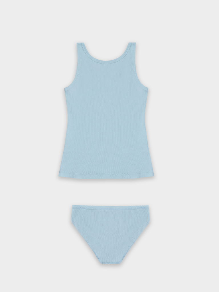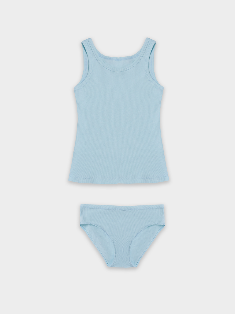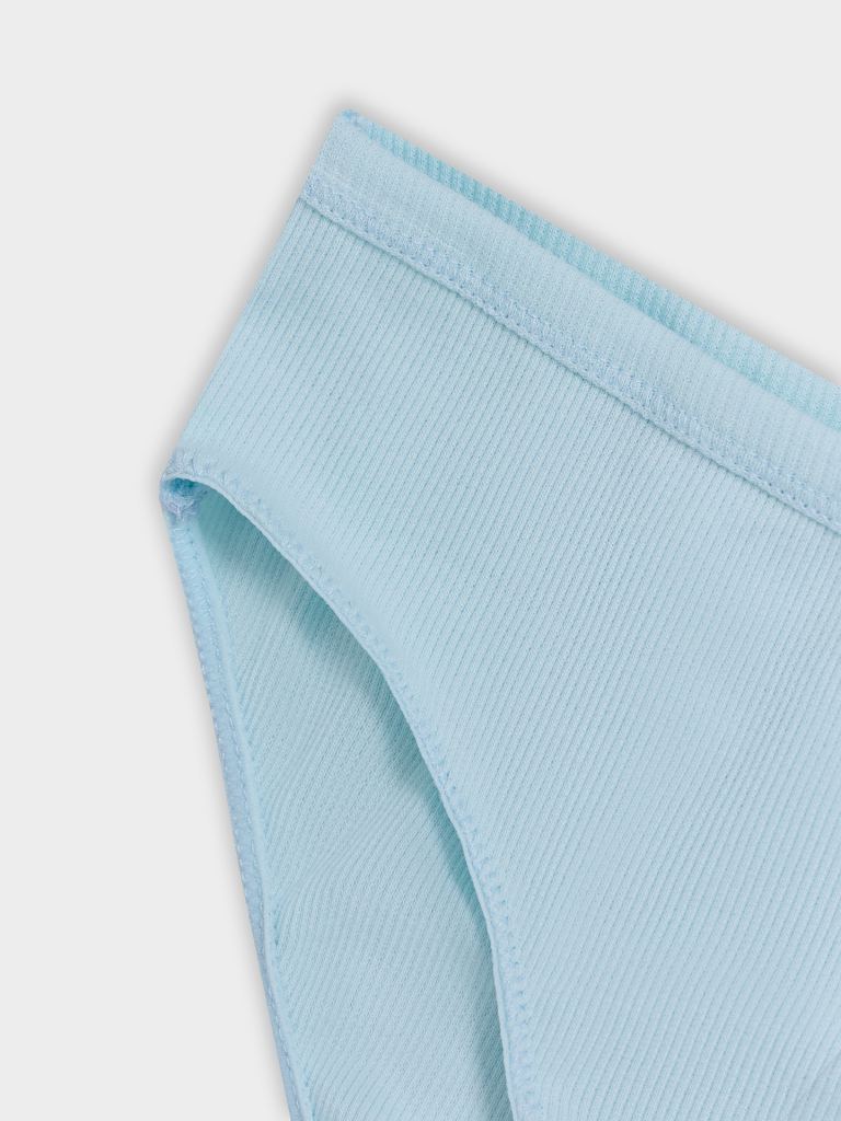Трусы для девочек. Деталь переда цельнокроеная. Ластовица из трикотажного кулирного полотна. Задняя деталь цельнокроенная. Верхний срез трусов обработан окантовкой из основного полотна с эластичной тканой жилкой внутри. Нижние срезы трусов обработаны тканой жилкой