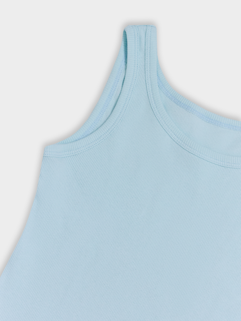 Майка прилегающего силуэта без рукавов. Длина до середины бедер. Горловина круглая. Проймы и горловина окантованы бейкой из основного полотна. Низ изделия обработан на 2х игольной плоскошовной машине.