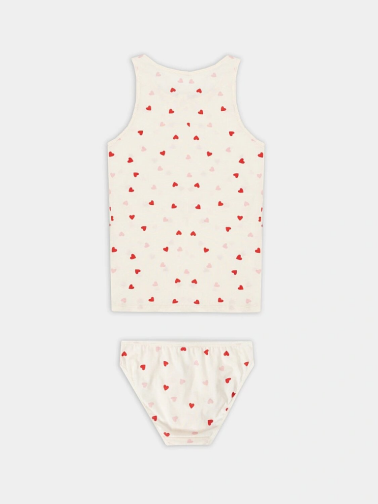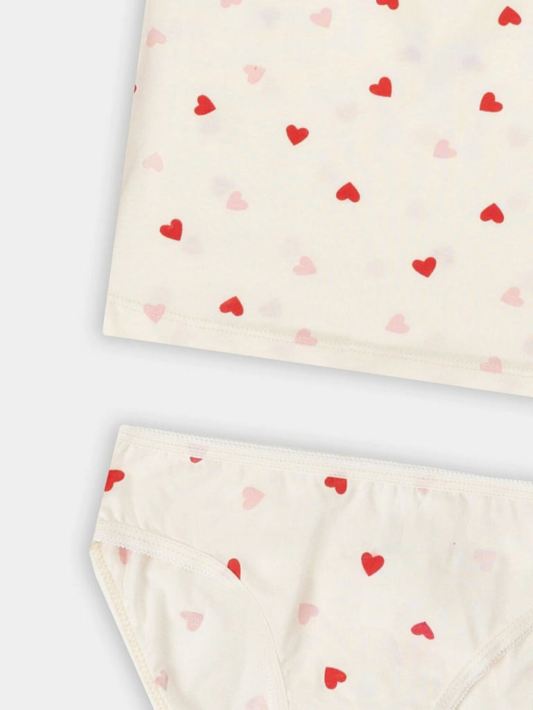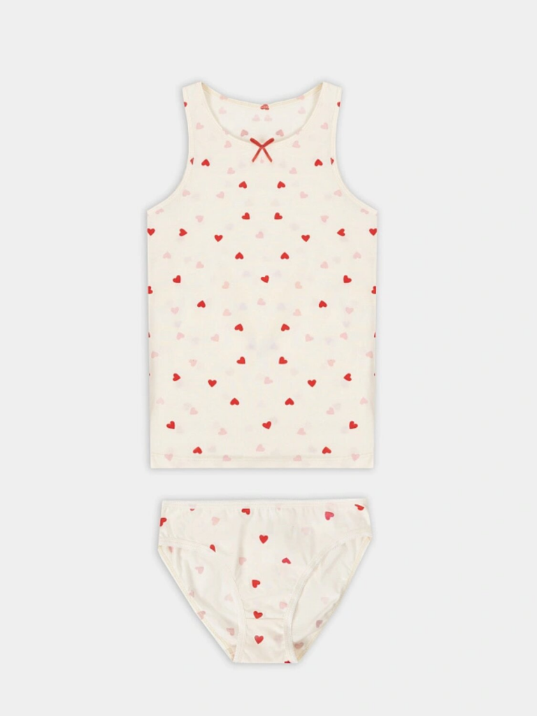 Нежные сердечки на белом фоне добавляют образу трогательности, а плоские швы исключают натирание. Этот комплект нижнего белья подойдет для садика, школы или сна — он не заметен под одеждой и сохраняет опрятность даже при активном движении. Если вы ищете, где купить детское белье, которое сочетает натуральные материалы, продуманный крой и милый дизайн, этот набор станет прекрасным выбором.
