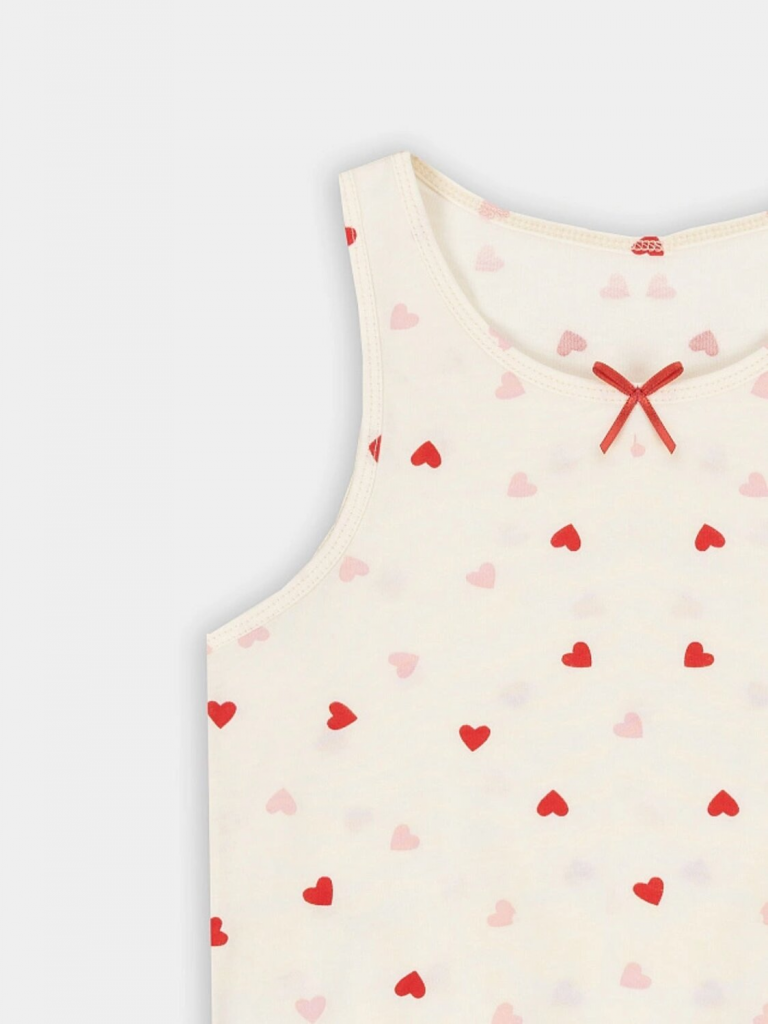Комплект для девочек белый в сердечки — это нежность и комфорт для самых маленьких модниц. Набор из майки и трусиков выполнен из высококачественного хлопка, который обеспечивает мягкость, воздухообмен и безопасность для чувствительной кожи.