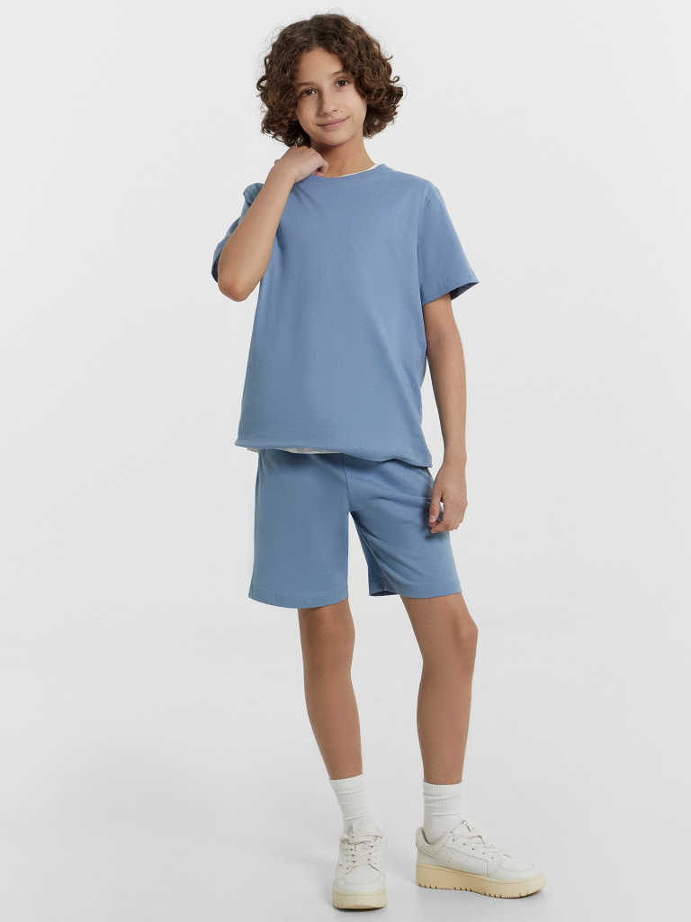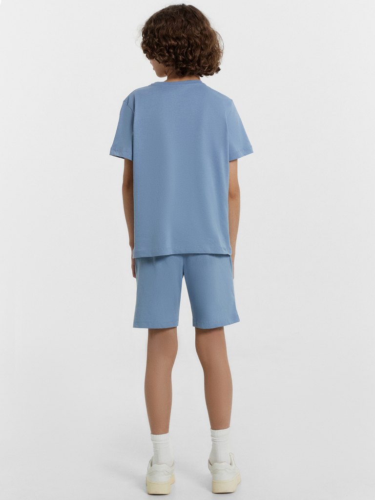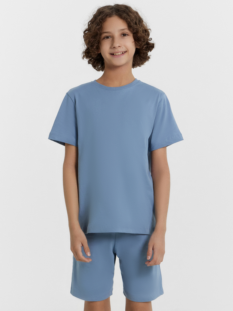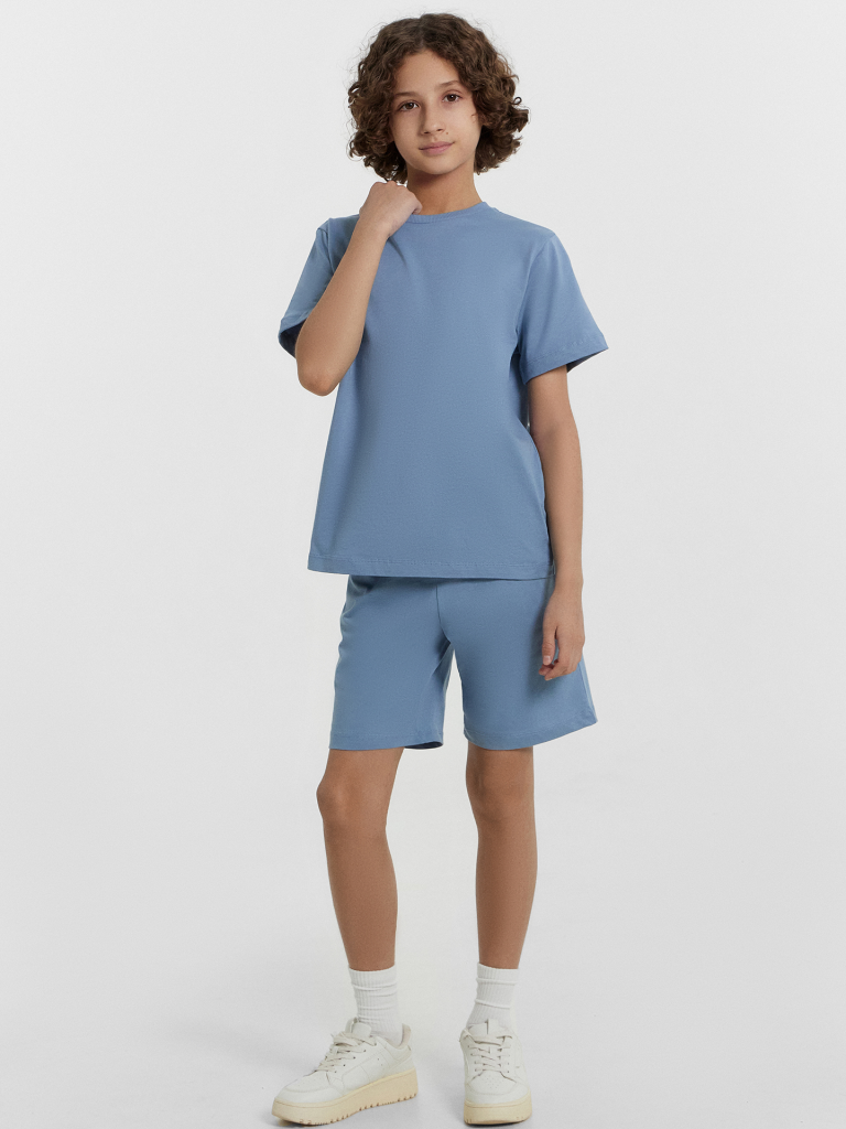 Комплект для мальчиков состоит из футболки верхней и шорт.