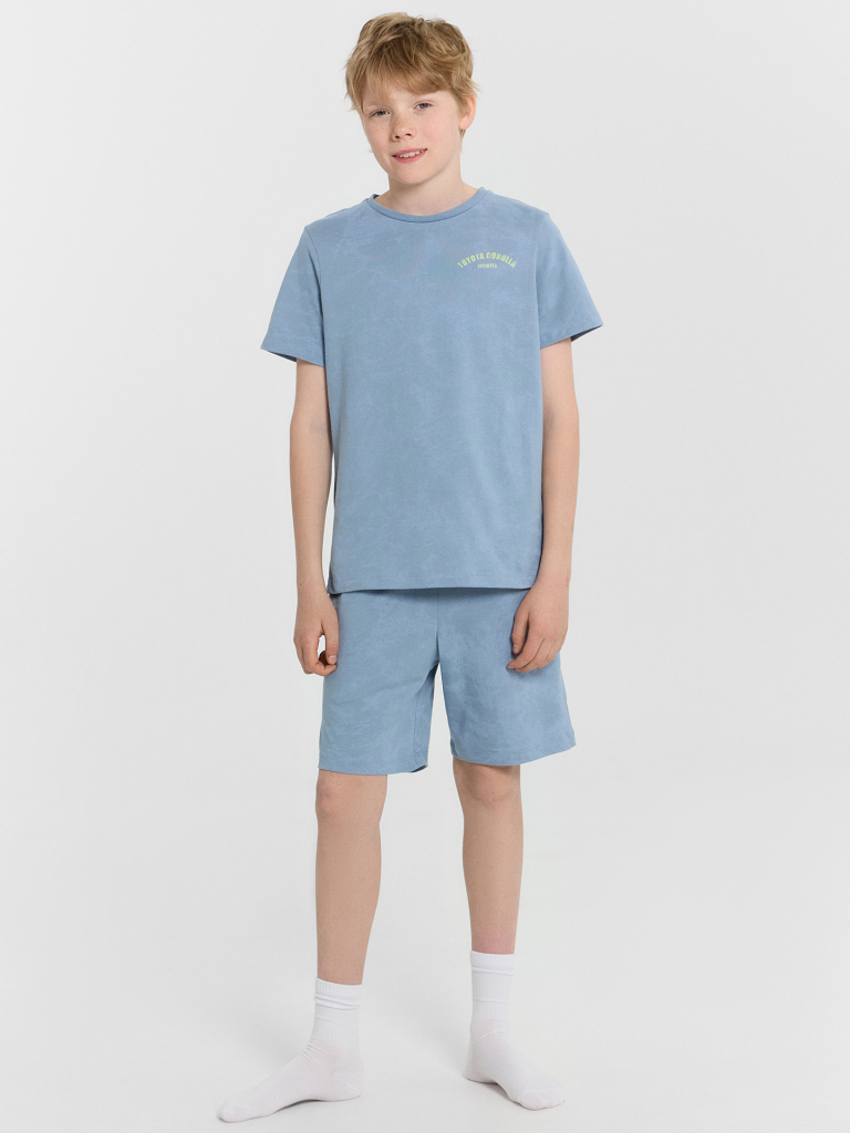 Комплект для мальчиков состоит из футболки верхней и шорт.