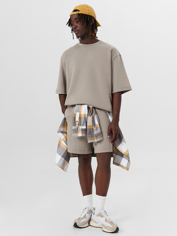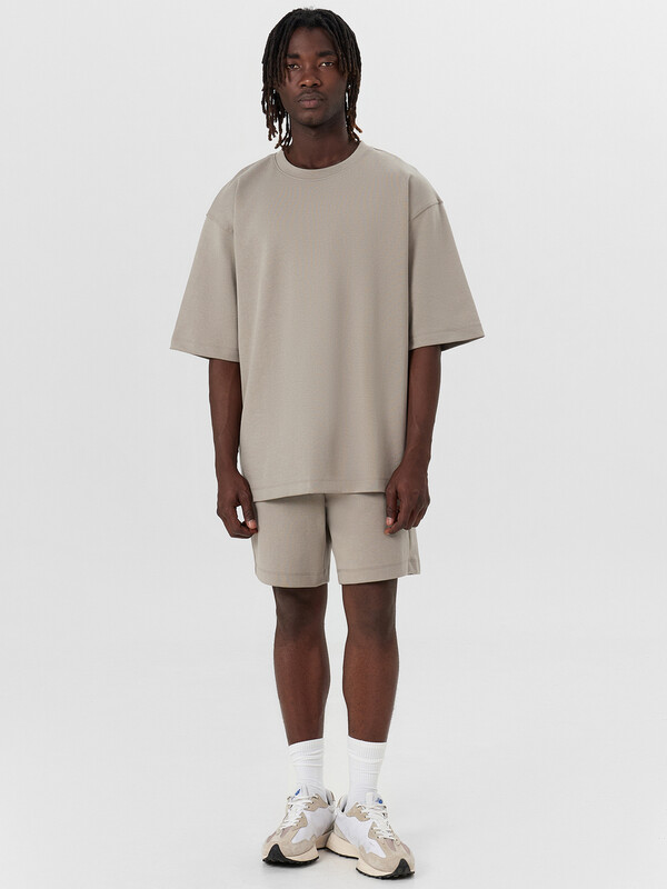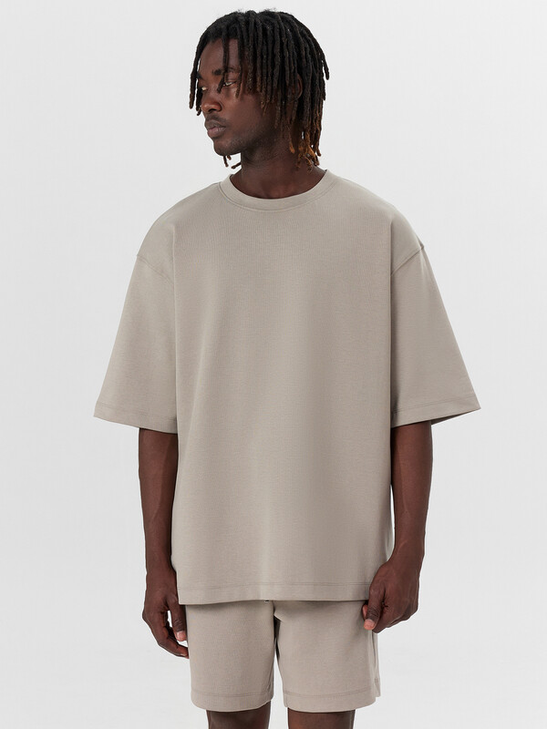 Мужской комплект станет отличным выбором для комфортного и стильного повседневного образа. Футболка прямого свободного кроя с круглой горловиной и слегка спущенной линией плеча добавляет расслабленный вид. Короткие рукава и обработка нижних срезов швом вподгибку обеспечивают аккуратный и завершенный вид. Шорты прямого свободного кроя длиной до колен создают удобство в движении, а эластичный пояс на кулиске позволяет подогнать посадку под индивидуальные предпочтения. Боковые карманы добавляют практичности и удобства. Изделие выполнено из интерлока — двойного трикотажа, известного своей прочностью, мягкостью и приятной текстурой. Он обладает высокой воздухопроницаемостью, эластичностью и долго сохраняет форму, не растягиваясь и не деформируясь. Этот материал обеспечивает комфорт в течение всего дня и идеально подходит для одежды, которая требует легкости и долговечности. Такой комплект идеально подходит для отдыха дома, прогулок или занятий спортом, сочетая функциональность и стиль. Комфортный и универсальный выбор для любого дня.