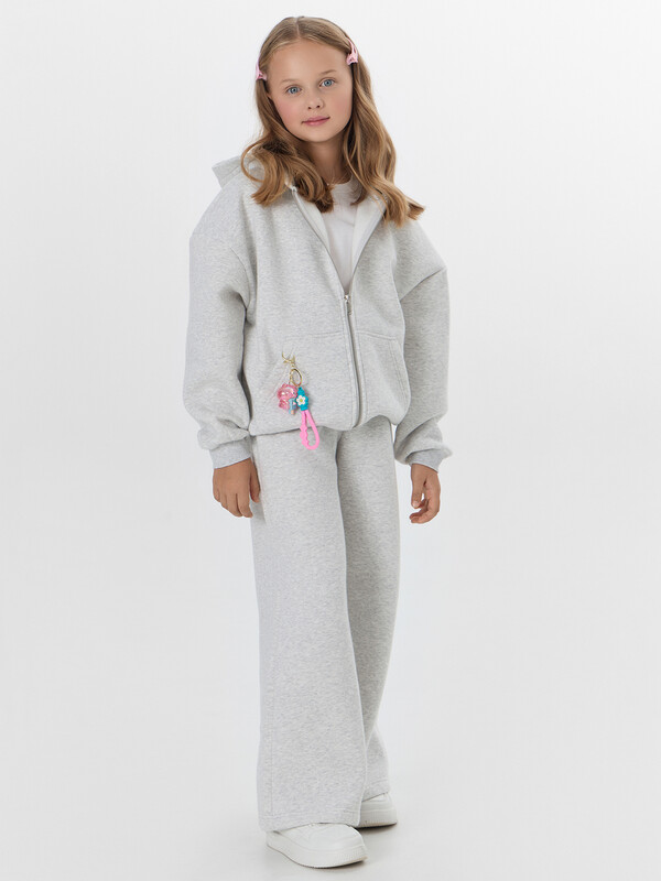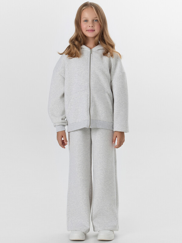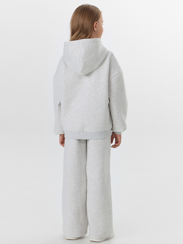 Серый костюм для девочек из коллекции Gentle Touch — идеальный комплект для комфорта и активного образа жизни. Модель выполнена из инновационного футера с пич-эффектом, который создает на поверхности ткани бархатистую текстуру, приятную для детской кожи.