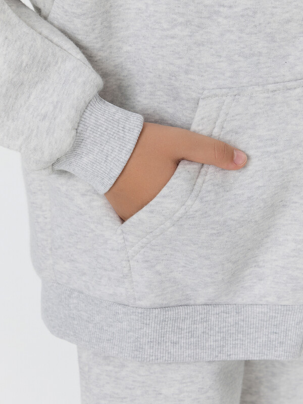 Брюки на эластичном поясе с регулируемым шнурком позволяют подобрать идеальную посадку. Мягкий начес внутри комплекта обеспечивает дополнительное тепло и уют. Универсальный серый цвет легко сочетается с другими вещами гардероба.