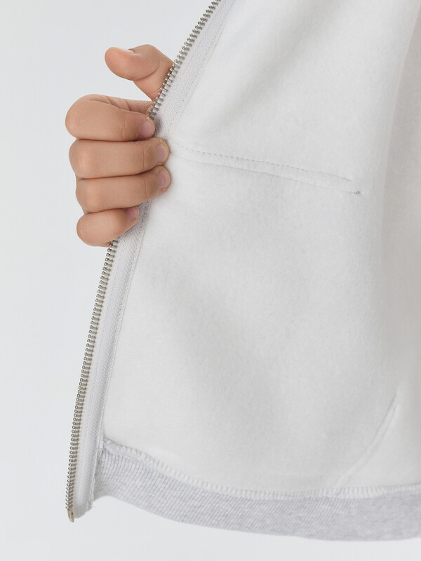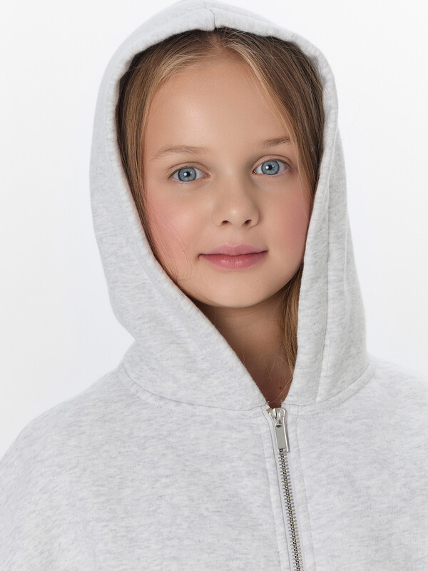 Толстовка свободного кроя с капюшоном и спущенными плечами обеспечивает свободу движений. Центральная застежка на молнию и практичные карманы-кенгуру делают модель функциональной. Эластичные манжеты и пояс из рибаны бережно фиксируют изделие.