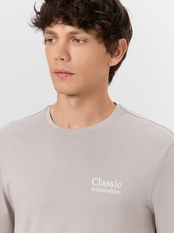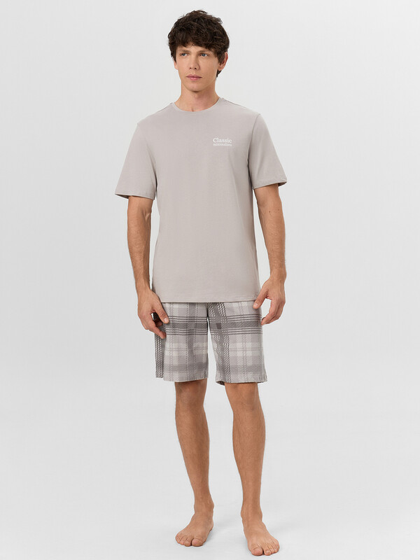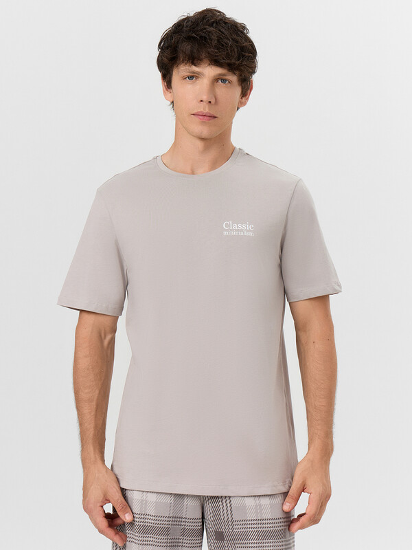 Мужской домашний комплект серого цвета с надписью "Classic Minimalism"(Классический Минимализм) - сочетает в себе сдержанный стиль и продуманный комфорт. Надпись на футболке подчеркивает лаконичную эстетику модели, созданной для ценителей простых и функциональных вещей.
